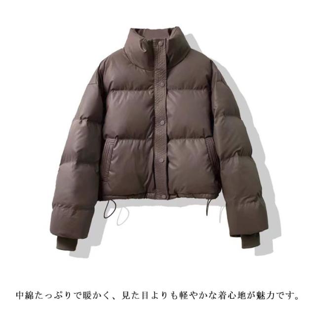 中綿 ハイネック アウター フードなし レディース 中綿ジャケット 防寒 中綿 スタンドカラー コート PU 暖かい 秋冬 冬服 おしゃれ かわいい