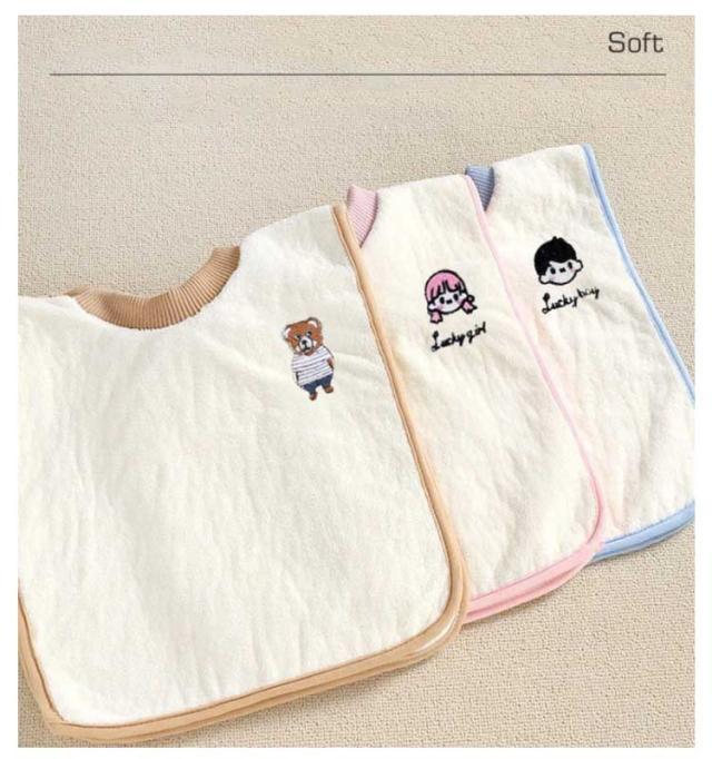 | 防水ベビーフェイスタオル。 服をカバーして手や口もサッと拭けるタオルエプロン! ワンタッチ操作で簡単に着脱できるのが嬉しいポイント。 食事用としてだけでなく歯磨きタオルにもおススメです。 お絵かきなどのプレイタイムにも使えてとっても便利なアイテムです。 | |