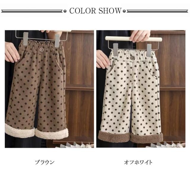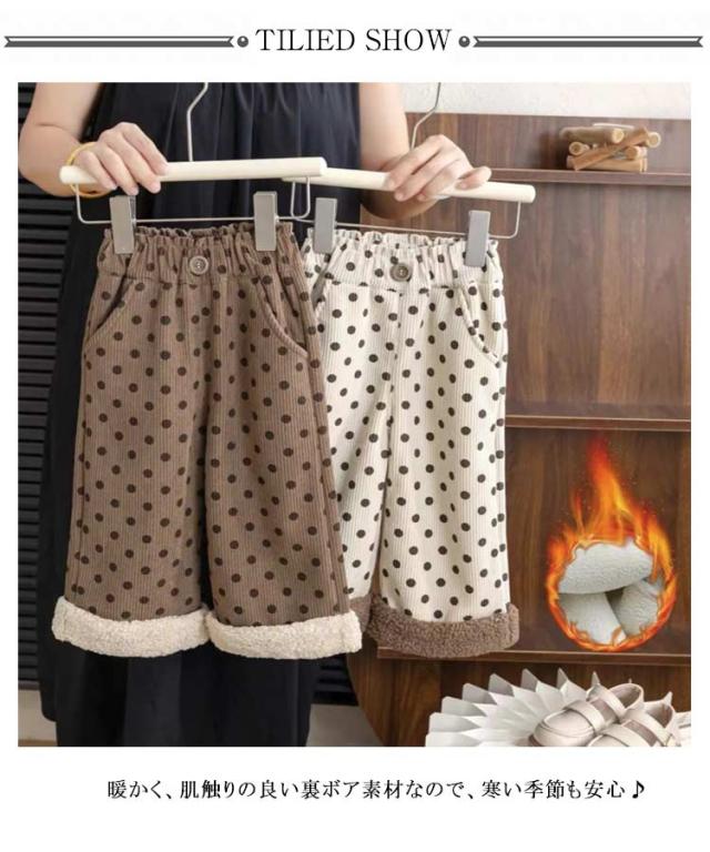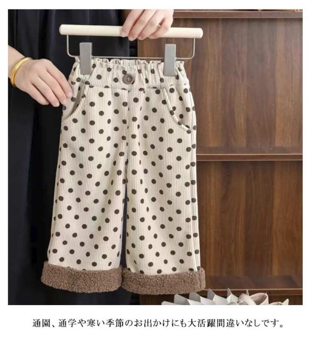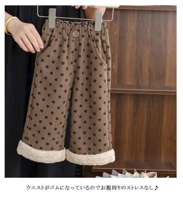 キッズ ジュニア ワイドパンツ 裏起毛パンツ 裏ボア 子供服 120 長ズボン ウエストゴム ベビー 子ども 防寒 ロングパンツ ドット柄 ポケット付き ボトムス キッズ 小学生 暖かい こども 冬服 通園 通学 80 90 女の子 110 100 130 140