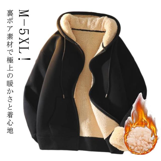 M-5XL 裏起毛 秋 秋冬 裏ボア 極暖 スポーツ アウター メンズ もこもこ M-5XL パーカー レディース スウェット ジップアップパーカー 暖かい ジップパーカー あったか 防寒 保温 ワンマイルウェア フード付き ルームウェア 部屋着 ブラック