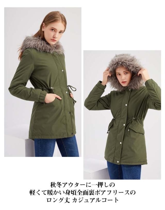 コート 真冬 軽い ジャケット 中綿 裏ボア モッズコート ジャンパー アウター 暖かい 秋 レディース ファー 裏ボア 冬 フード 裏起毛 厚手 大きいサイズ ロング ミリタリー 防寒 フード付き フェイクファー