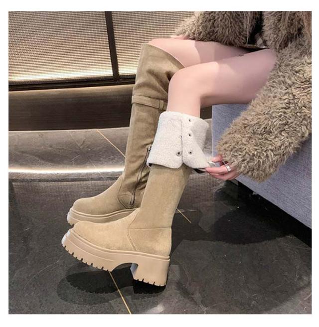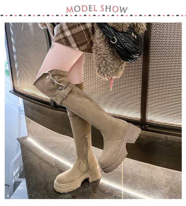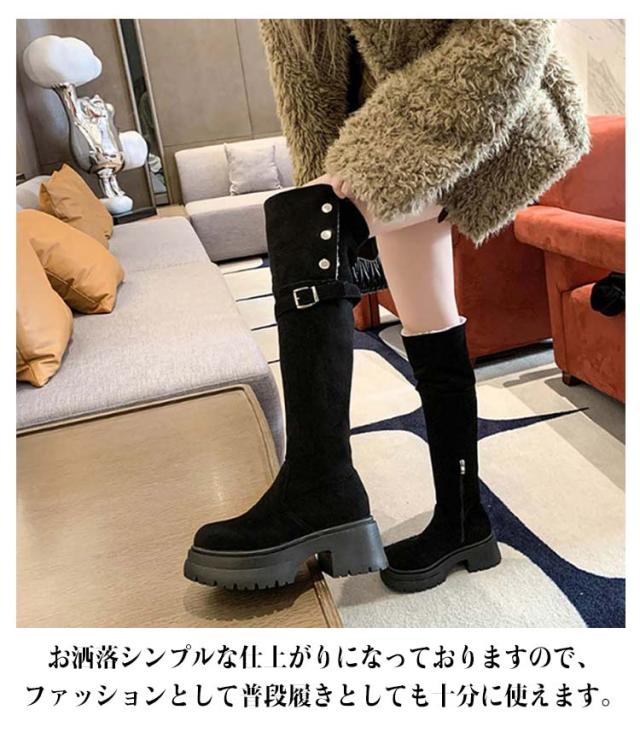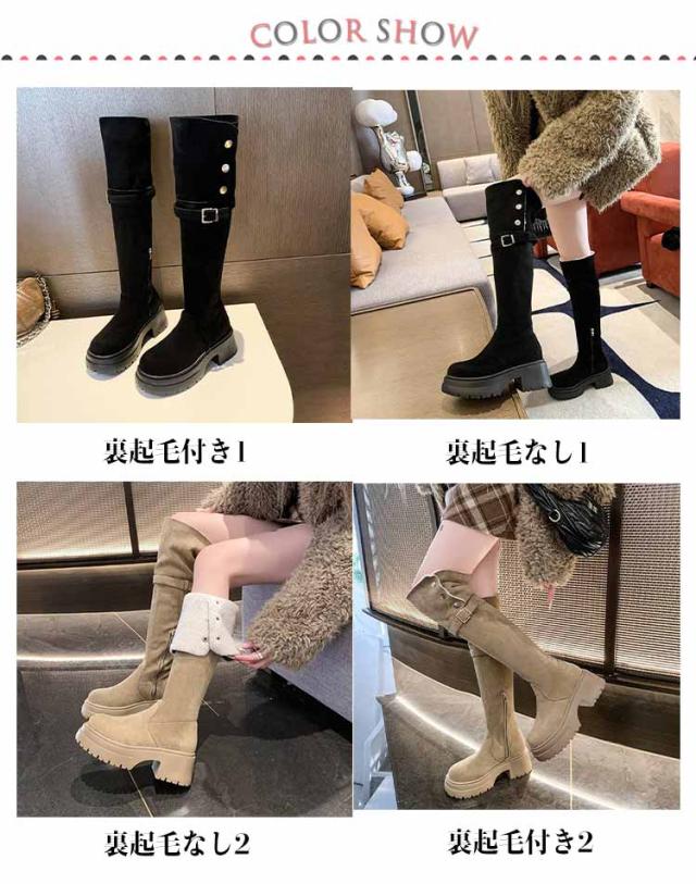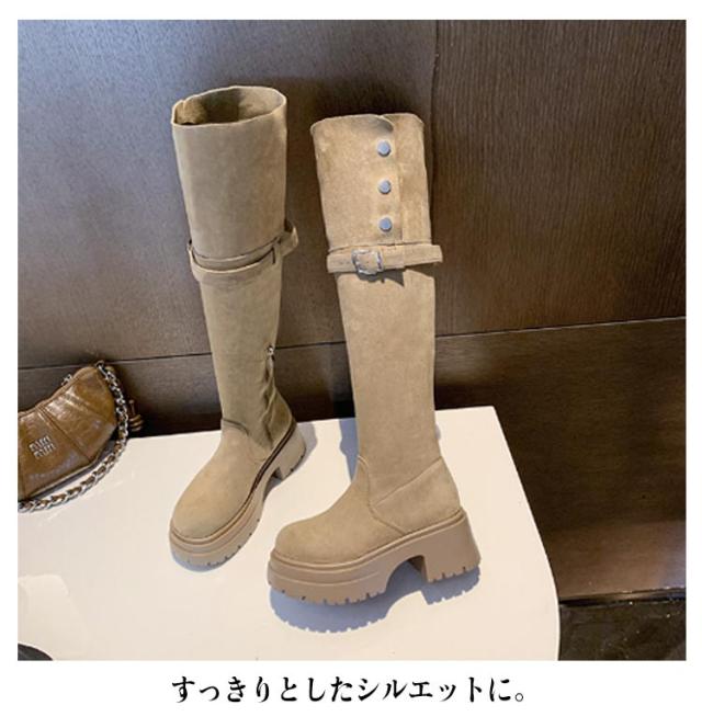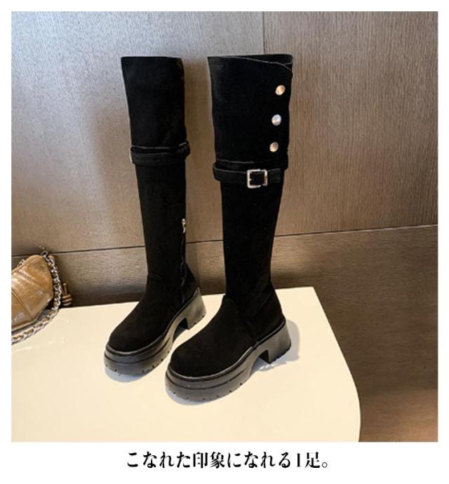 ロングブーツ 2way ニーハイ 美脚ブーツ 着やせ 2way 厚底 裏起毛なし 太ヒール ニーハイブーツ ブーツ 歩きやすい ブーツ 折り ベルト 痛くない おしゃれ 22.5-25cm