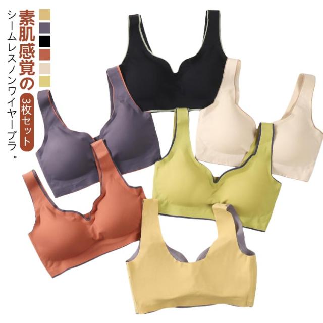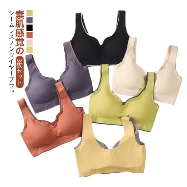 3枚セット レディース ブラジャー シームレスブラ 取り外し可能 ナイトブラ 盛れる ノンワイヤーブラ はみ肉 パッド付き 脇高 夜用ブラ 楽ブラ スポーツブラ ノンストレス フィット感 ヨガ ブラ ブラジャー