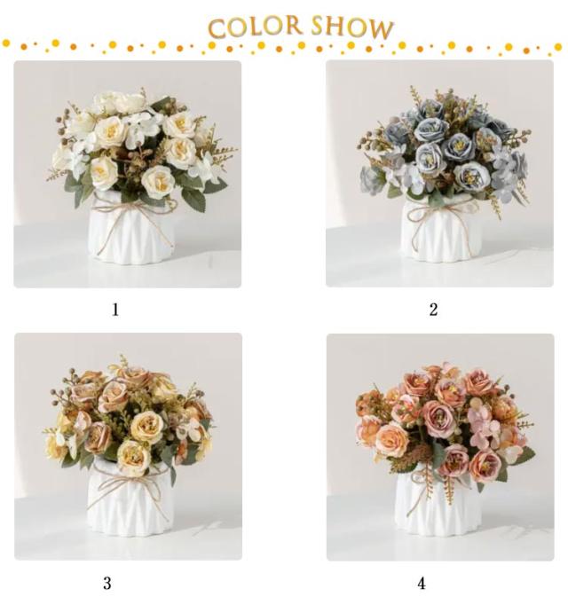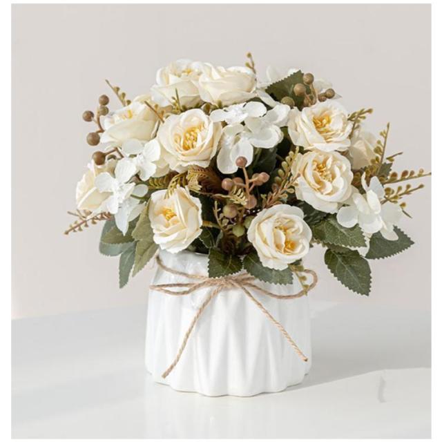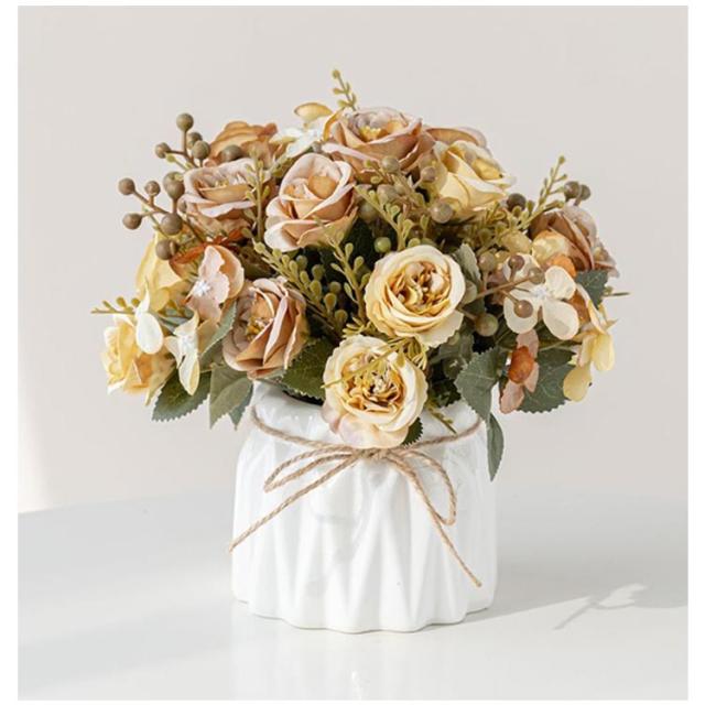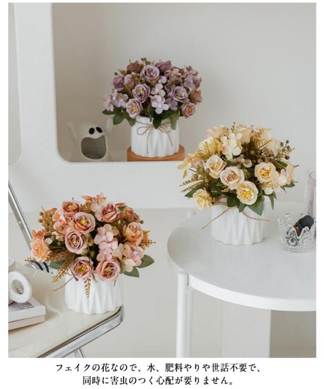 20×20cm お店 ミニサイズ ローズ かわいい 花束 ブーケ 造花 菊の花 飾り バラ アートフラワー インテリア 玄関 リビング 花瓶付き ローズ 装飾 北欧 おしゃれ 枯れない 花 薔薇 ウェディング 結婚式 飾り付け 女性 妻 母 彼女 プレゼント