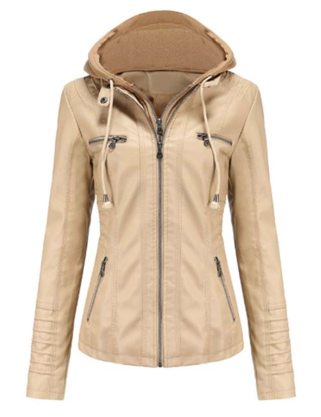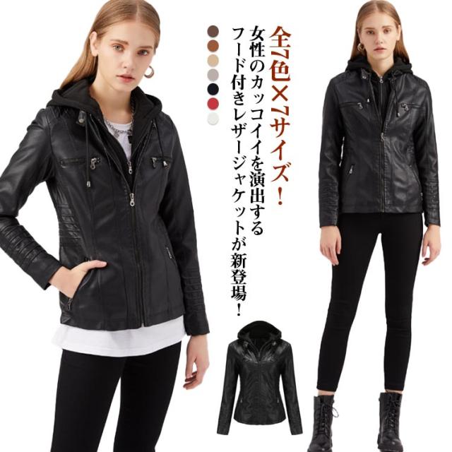 大きいサイズ スリム 合皮 ジャケット フード付き合皮ジャケット レディース カジュアル フェイクレザージャケット フード付き パーカー PU フード付き合皮ジャケット ブルゾン ショート丈 ライダースジャケット カッコイイ アウター 春秋 大人 女性