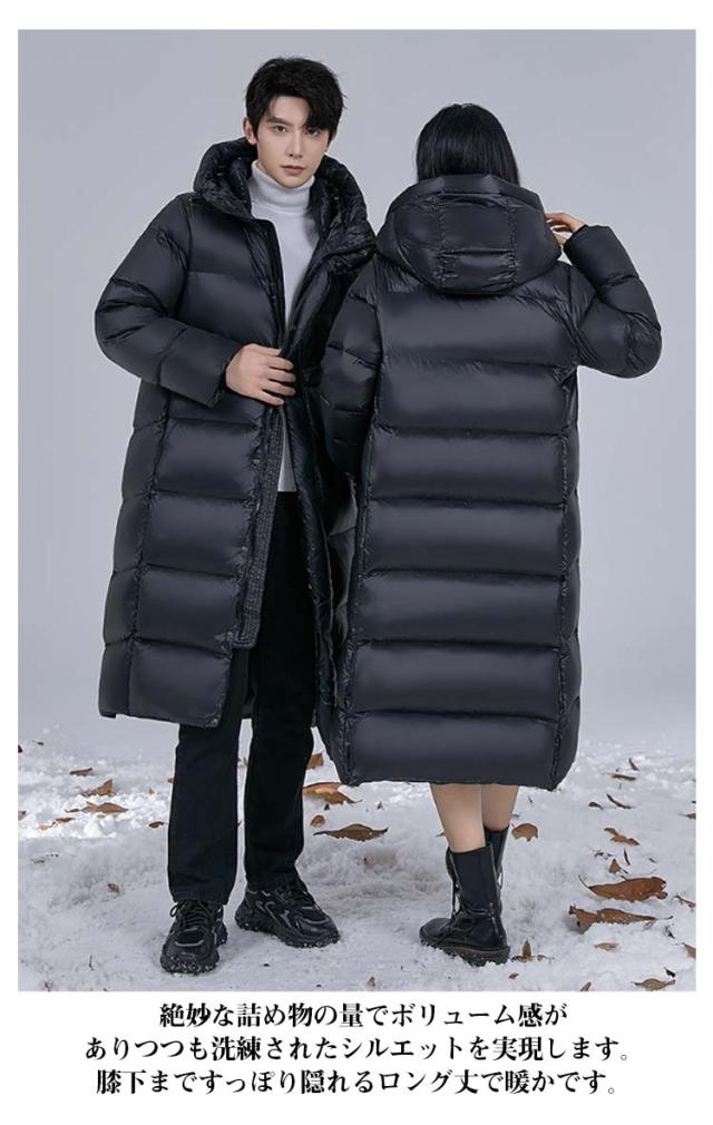 レディース メンズ ダウンコート ダウンコート おしゃれ ロング丈 ダック ダウンジャケット ロング ダウン きれいめ 大きいサイズ 防風 防寒 ビジネス 軽量 軽い ベンチコート フード付き ゆったり 体型カバー ブラック