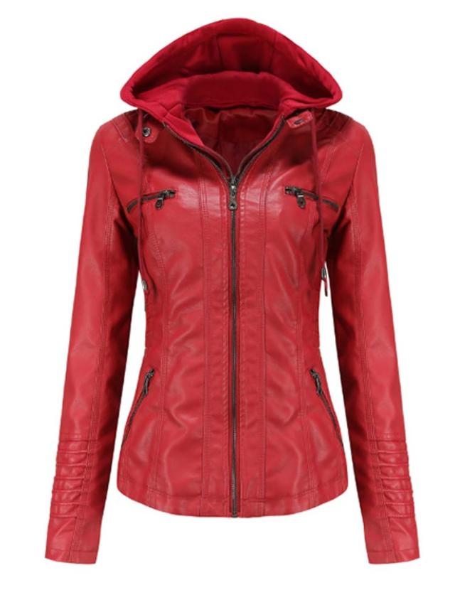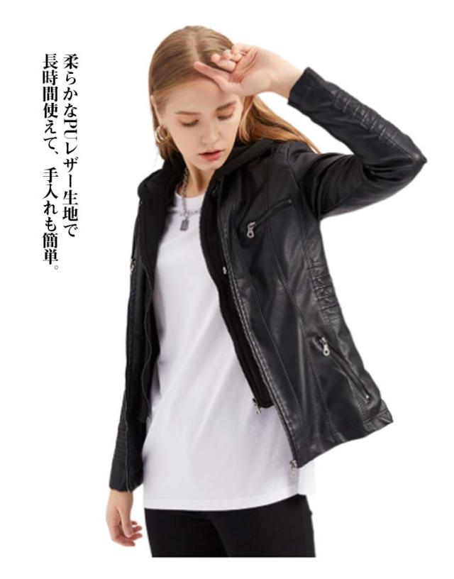 ブルゾン レディース ジャケット フード付き カジュアル フード付き合皮ジャケット フード付き合皮ジャケット フェイクレザージャケット 大きいサイズ 合皮 PU パーカー フェイクレザー ショート丈 スリム カッコイイ アウター 春秋 大人 女性