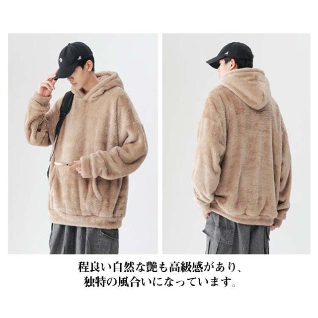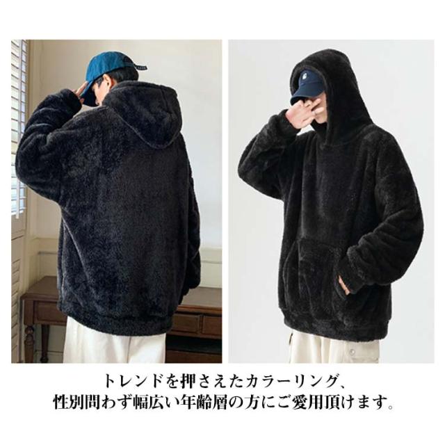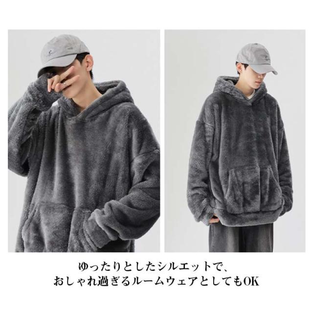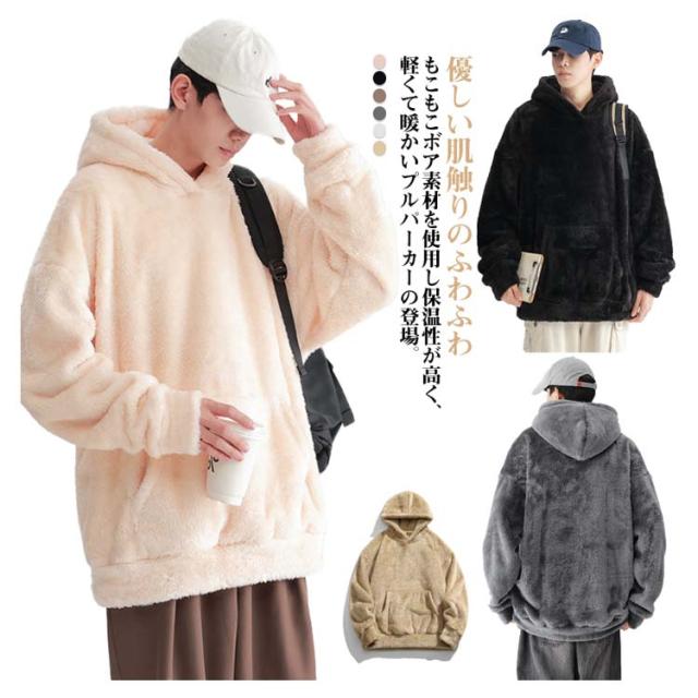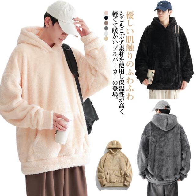 ボアパーカー ゆったり 暖かい 大きいサイズ 両面ボア プルオーバー 男性 プルパーカー フード付き 秋冬 メンズ 大人 あったか 暖かい トップス 無地 シンプル あったか おしゃれ カジュアル ルームウエア 重ね着 冷え対策 ギフト プレゼント