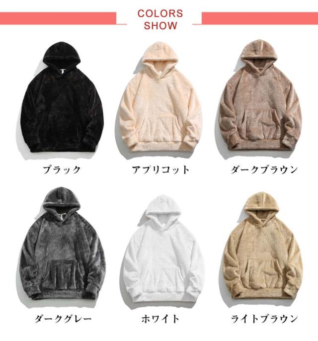 | 優しい肌触りのふわふわ もこもこボア素材を使用し保温性が高く、 軽くて暖かいプルパーカーの登場。 程良い自然な艶も高級感があり、独特の風合いになっています。 ゆったりとしたシルエットで、おしゃれ過ぎるルームウェアとしてもOK トレンドを押さえたカラーリング、性別問わず幅広い年齢層の方にご愛用頂けます。 | |