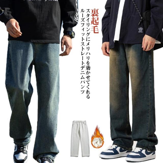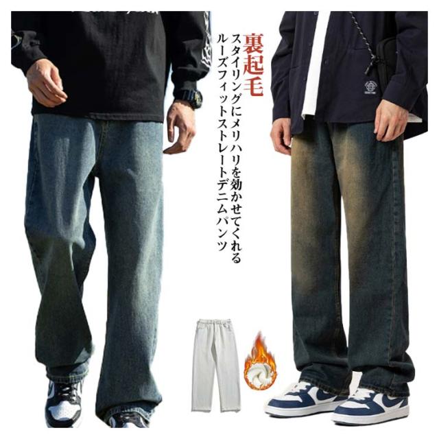 ストレートパンツ ジーンズ ジーパン 男性 ゆったり ワイドパンツ レギュラーおしゃれ ボトムス デニムパンツ ストレート デニムパンツ 春 ファッション 大人 パンツ カジュアル 夏 秋 冬 裏起毛 裏起毛なし 無地 カジュアル おしゃれ 通勤 ギフト プレゼント