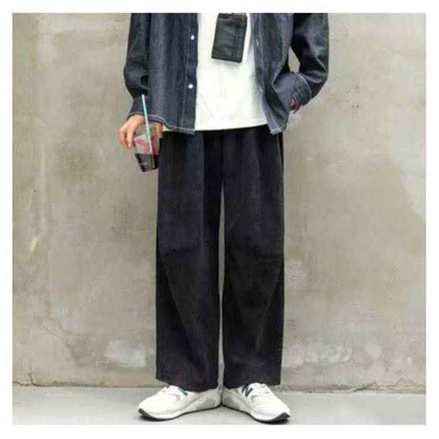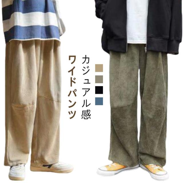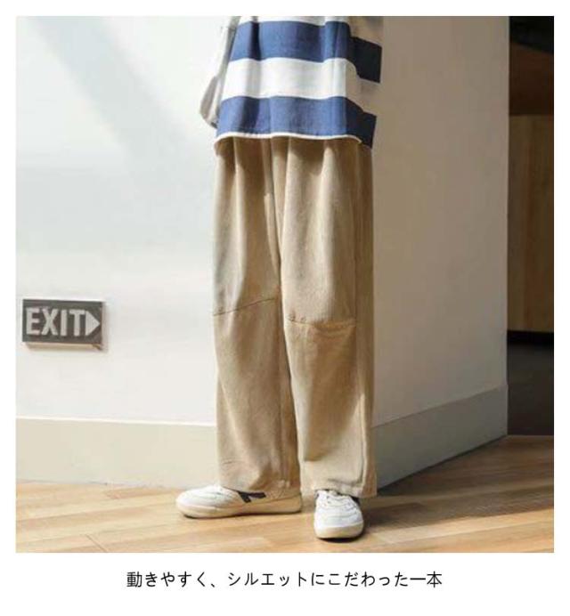 XL ワイドパンツ ズボン ボトムス ワイドパンツ M カジュアル ゴムウエスト 無地 ワイド L パンツ ブルー カーキ 黒 ゆったり LL コーデュロイ 全4色 レディース ユニセックス 秋冬 秋服 秋物 冬服 冬物