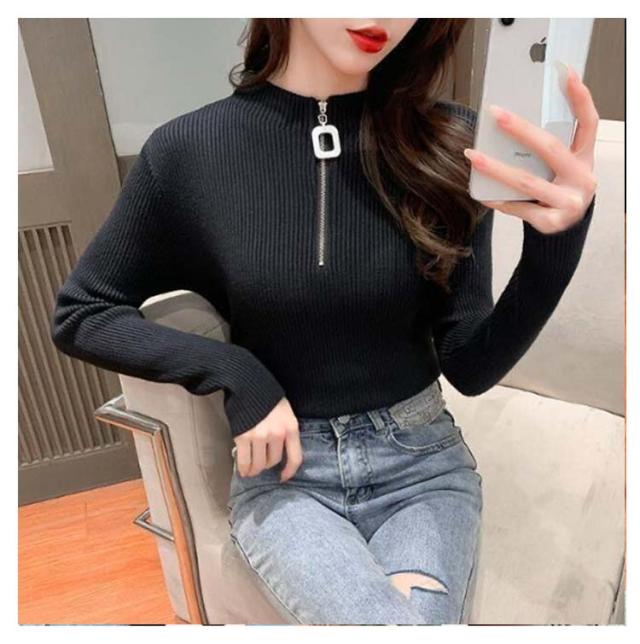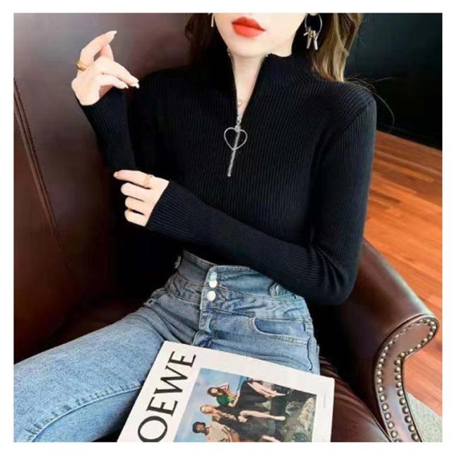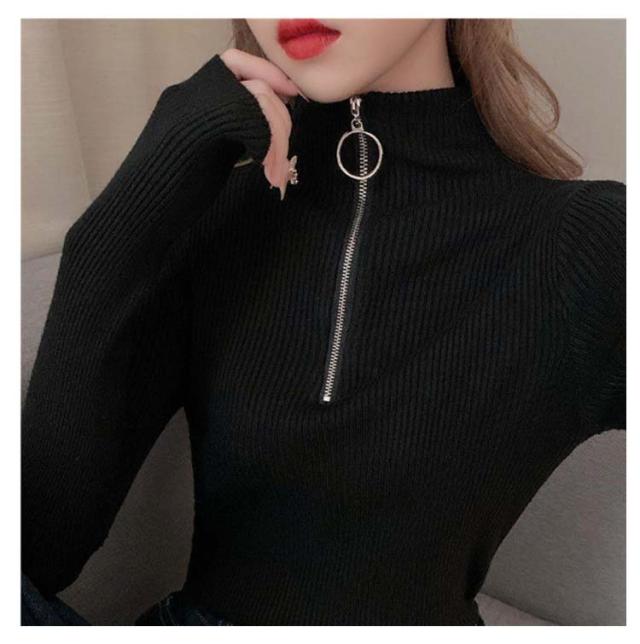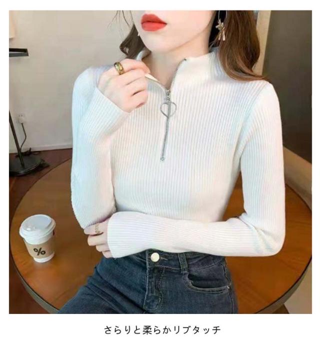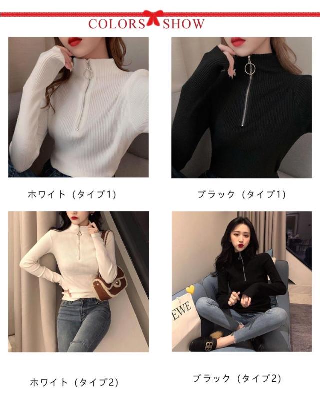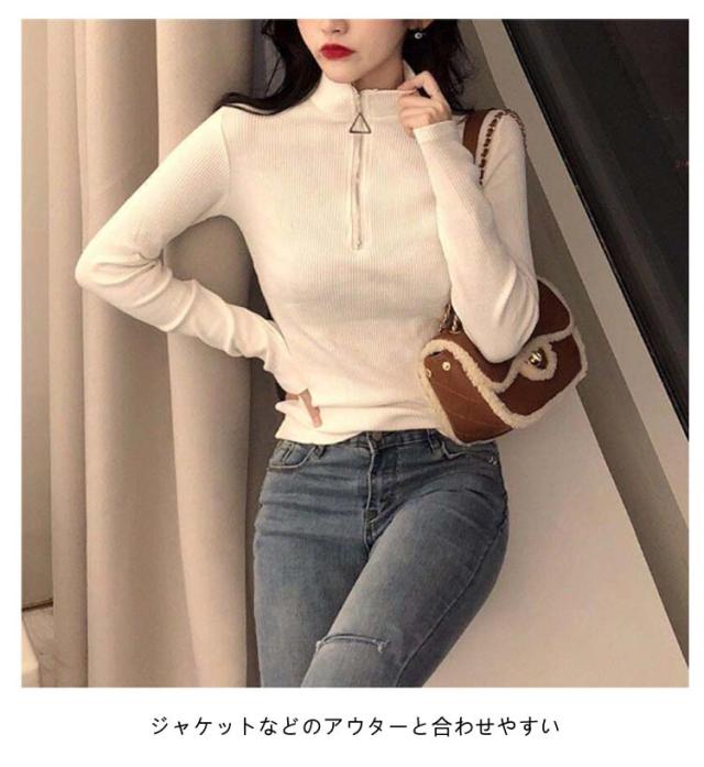 ハイネック ニット 厚手 インナー ニット レディース 薄手 タートルネック ファスナー トップス リブ編み OL ジッパー 長袖 セーター 重ね着 ストレッチ 秋 リブニットセーター 秋冬 冬 フェミニン オフィス カジュアル 上品 大人 無地 ロング ショート 春 秋冬