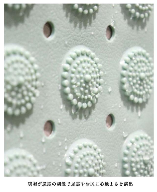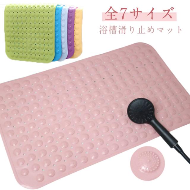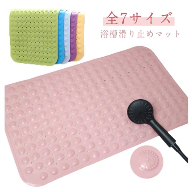 | 表面はデコボコ加工で転倒を防止します。 マットの裏には吸盤がついているため床にしっかり固定されます。 滑りやすい浴槽の底にこのマットを敷くことで転倒を防止します。 浴槽内のみでなく、洗い場でも使用が可能でより安全に! 突起が適度の刺激で足裏やお尻に心地よさを演出 たくさんの丸穴があり水きれが良くすばやく乾きます。 軽量・柔らかなPVC素材、折りたたみや、丸めて保管できるので収納に便利です。 もしくは壁に吸着して収納が可能で、省スペースです。 高齢 介護 ベビー 子供 妊娠中の方 様々な方にご愛用頂いております。 バスタブのサイズに合わせてはさみでカットが可能です。 | |