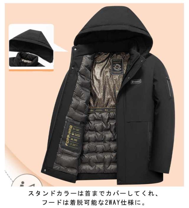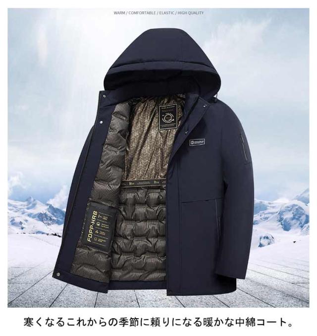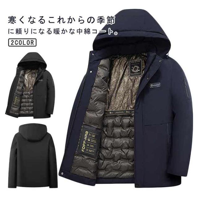 フード付き 中綿コート 中綿コート 厚手 お年寄り ロングコート ブルゾン アウター ボアジャケット ビジネス ジャンパー 防寒 防風 メンズ 秋冬 暖かい 軽量 無地 ボリュームネック フード脱着 ゆったり カジュアル