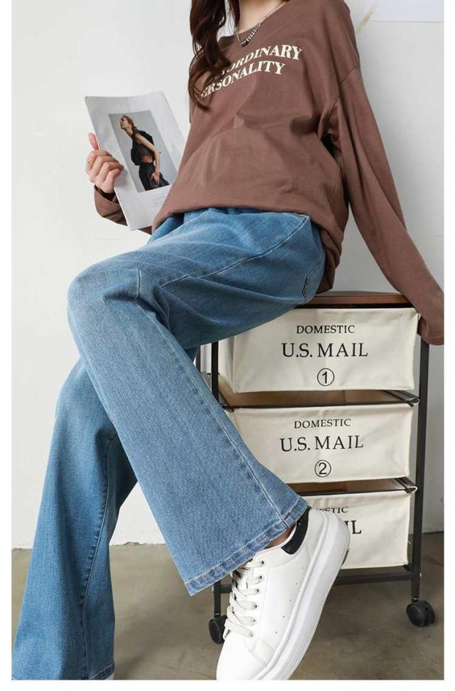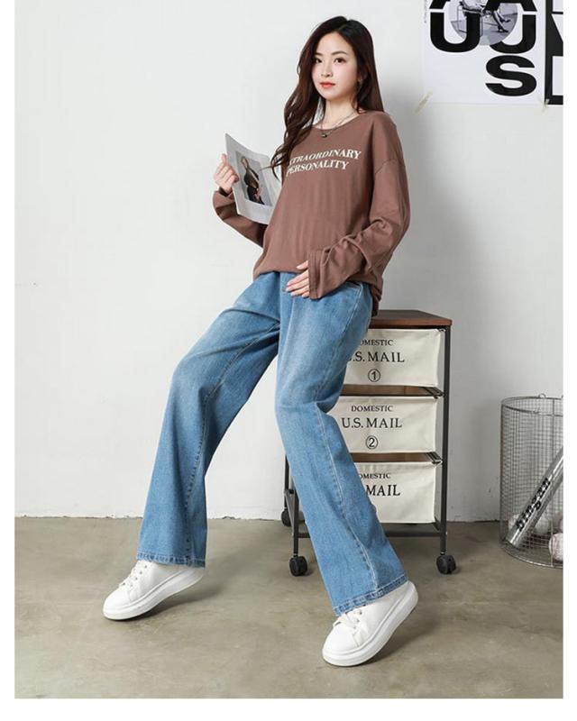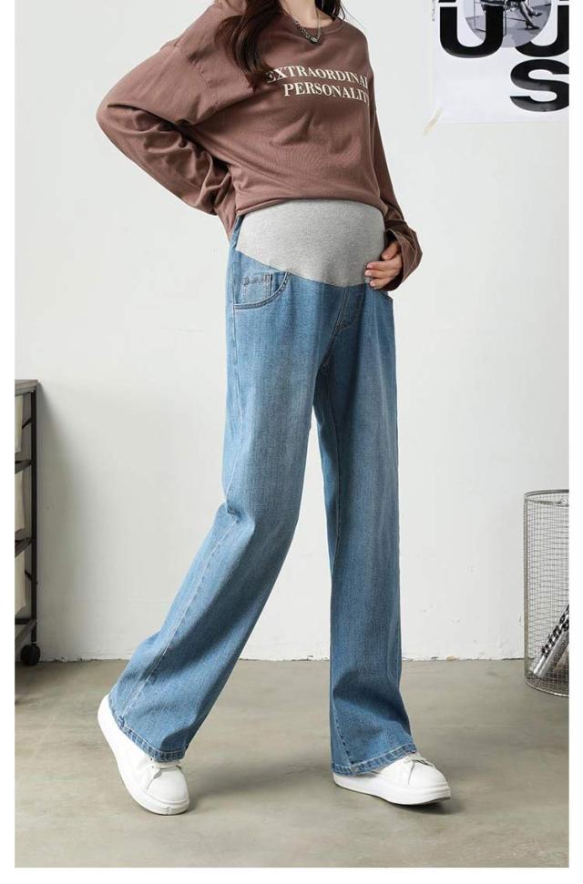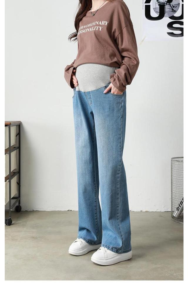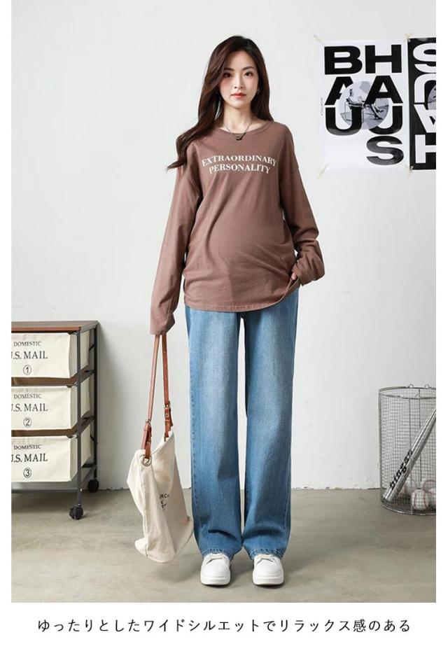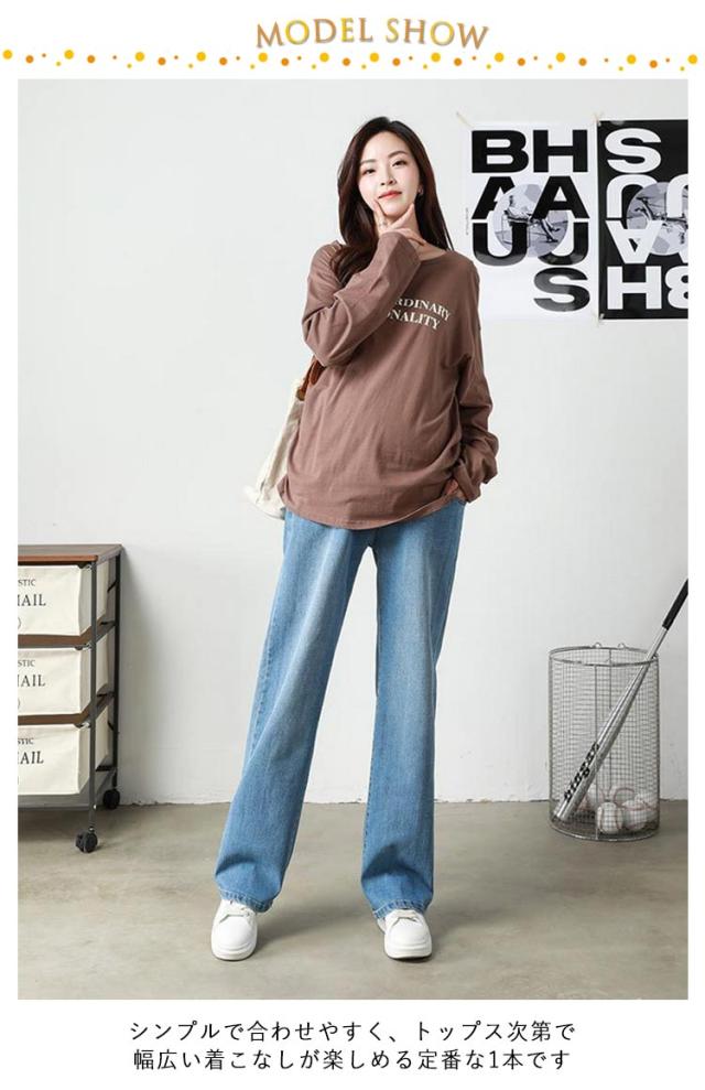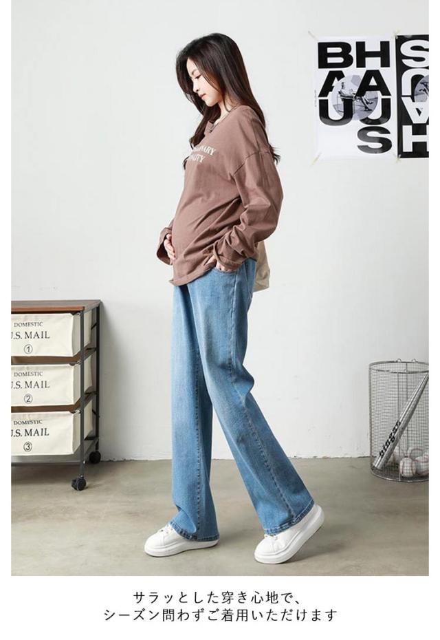 ジーンズ デニム ストレートデニム ワイドパンツ パンツ デニムパンツ マタニティ マタニティ ロングパンツ ストレッチ 妊娠初期 妊娠後期 臨月 妊婦服 楽ちん アジャスター デイリー 大きいサイズ
