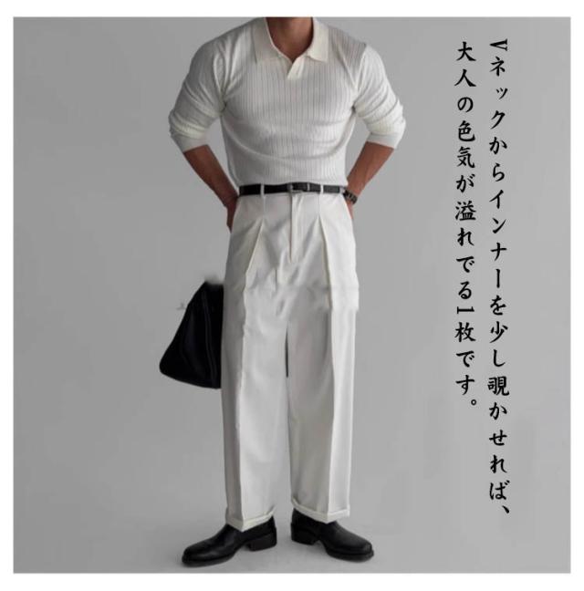 | 一度試着みたら、クセになる快適さ格好いいニットポロシャツ。 Vネックのデザインで大人スタイルにマッチし、着用だけで大人のおしゃれな雰囲気が手に入ります。 細身のデザインで鍛えたお体を絞り出してきれいに見せます。 薄手のアクリルボディーを使用した季節を問わず楽しめるニット素材。 一枚ではもちろん、レイヤードスタイルにもおすすめ。 なデザインは流行に左右されず長くご愛用いただける一着です。 | |