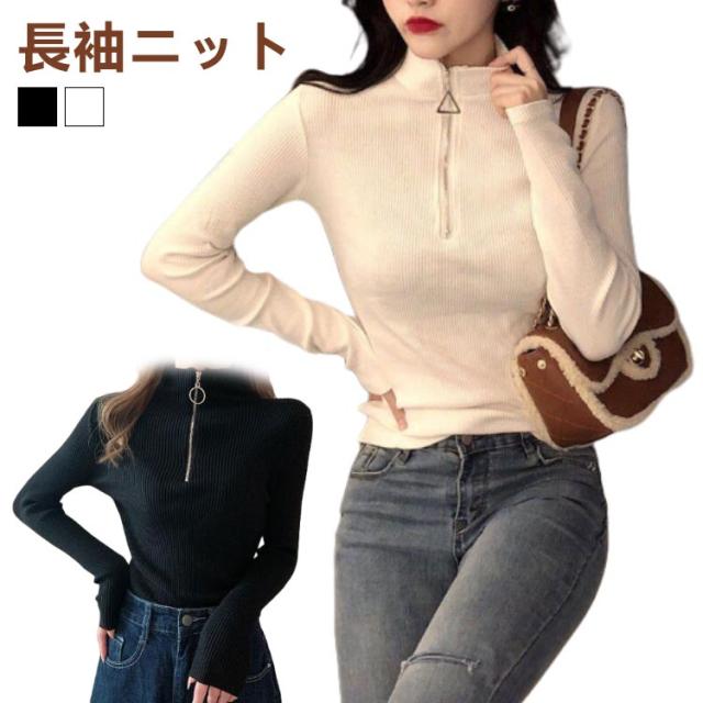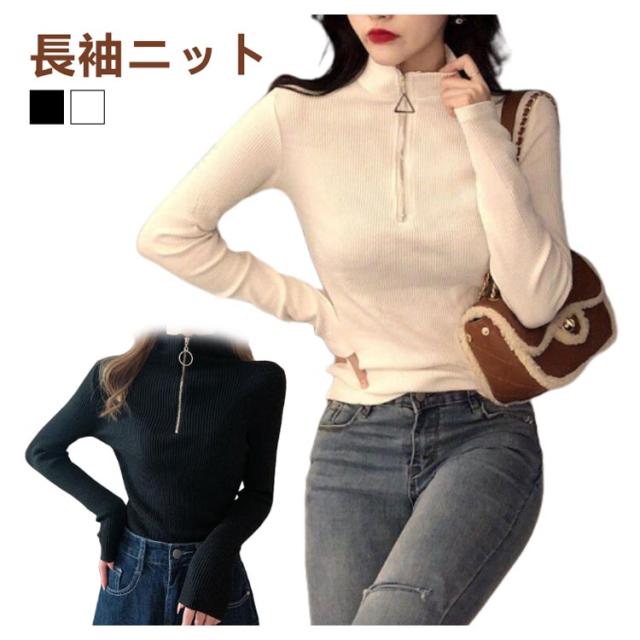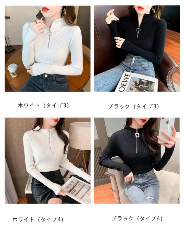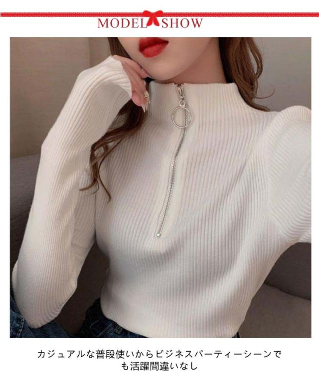 レディース ニット カジュアル タートルネック インナー リブ編み 長袖 ハイネック 秋冬 リブニットセーター ジッパー ニット ファスナー トップス 薄手 重ね着 ストレッチ 秋 OL 冬 厚手 リブニット オフィス フェミニン 上品 大人 無地 ロング ショート 春 秋冬