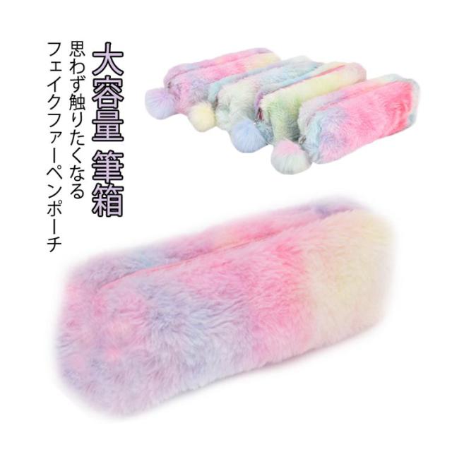 もこもこペンケース ファー ポーチ 小物入れ コスメポーチ 化粧ポーチ 入学 お祝い 新学期 可愛い 筆箱 ふわふわ 大容量 ペンケース 虹色 レインボー プレゼント 入学 準備 入学 準備 入学祝い 中学生 小学生 プチギフト かわいい ギフト 送料無料