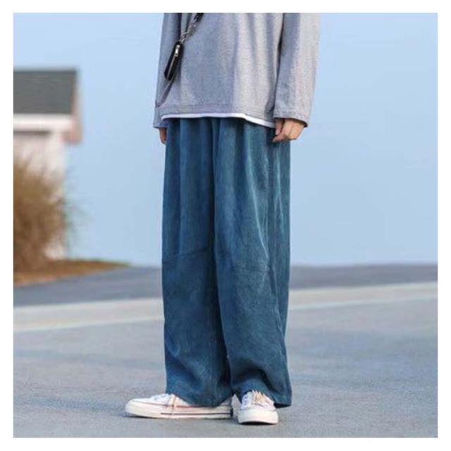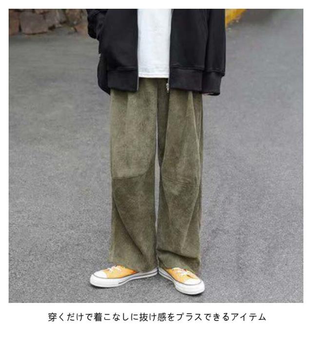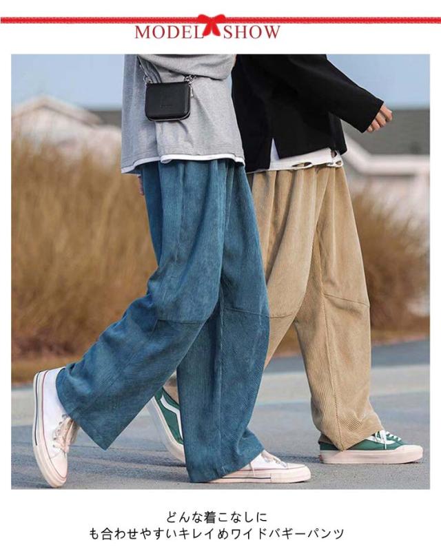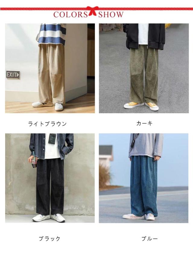 カーキ ワイドパンツ ワイド パンツ ゆったり メンズ ボトムス 秋服 黒 コーデュロイ 無地 カジュアル ブルー M ゴムウエスト L LL XL 全4色 レディース ユニセックス ズボン ワイドパンツ 秋物 冬服 冬物
