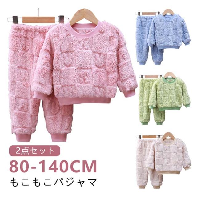 | 80-140cm もこもこパジャマ 便利な2点セット。お揃いカラーがかわいいトップス&パンツ ウエストはゴムでラクチン♪ 袖囗・足口もゴム入りで、きゅっとしっかり暖かい。 優しい肌触り。もこもこふわふわな厚手生地が心地いい | |