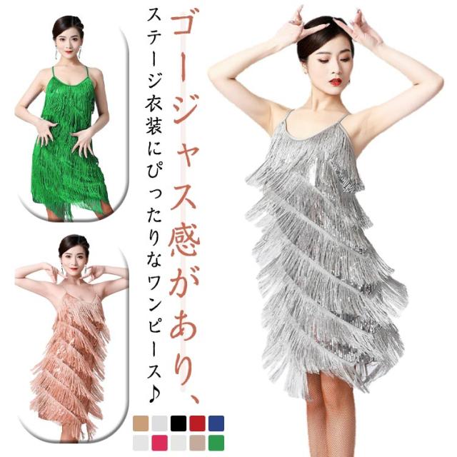 ダンス衣装 キャミソール ドレス 女性 大人 フリンジ ティアード スカート ラテン衣装 社交 ワンピース ヒップホップ ジャズダンス 練習着 ダンスウェア ダンサー 社交ダンス パーティー ボディコン 発表会 舞台衣装