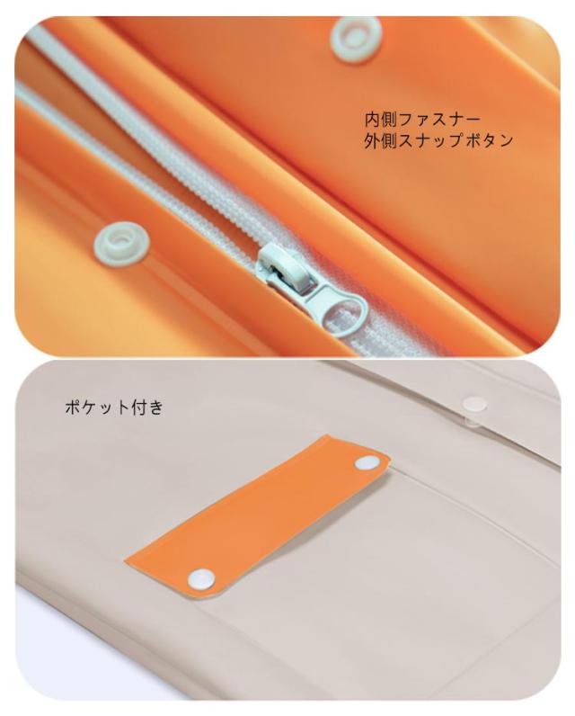 | ランドセル対応/ファスナー付き/収納バッグ付 キッズレインコート 105-160cm 透明フード付き。視野狭くならず安全! お子様の安全と快適さを考慮した工夫がいっぱいの明るい色。※傘、長靴は商品に含まれません。 背中のタックを広げればランドセルを背負ったままで着用できます。もちろんリュックもOK♪ 収納袋付きなのでいつでもコンパクトに持ち歩けます。 首の部分は紐付きで縛ると雨風の侵入を防げる。 | |