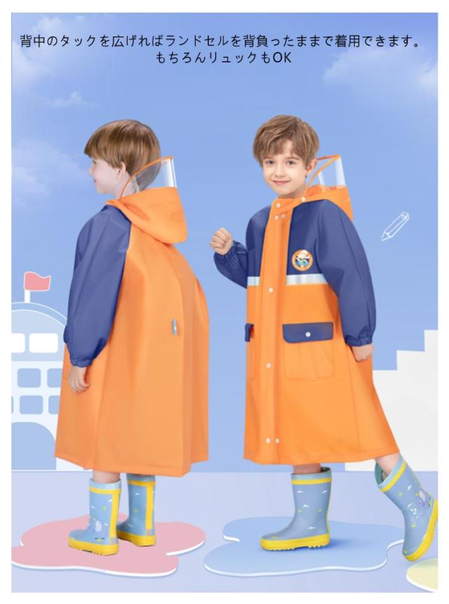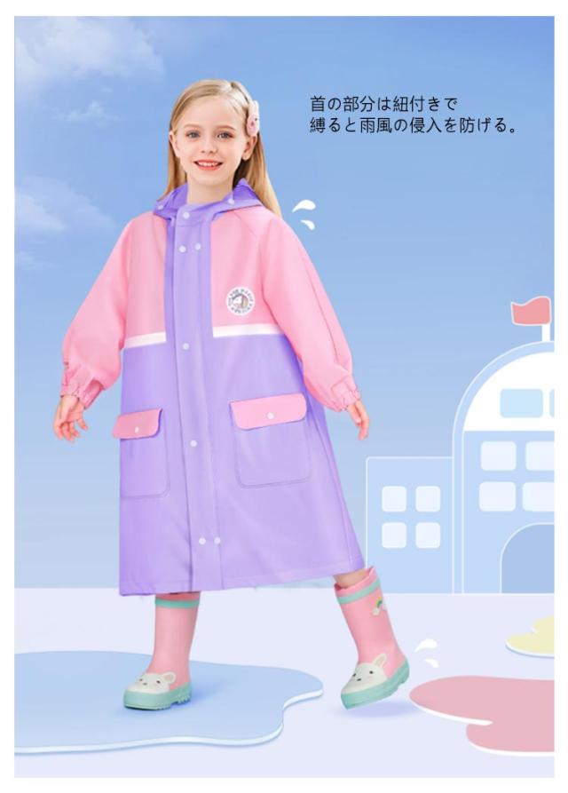 防水 ランドセル キッズ ランドセル対応 小学生 通園 通学 入園入学 女の子 子供 撥水 レインコート かわいい おしゃれ 雨具 ジッパー 幼稚園 ランドセル対応 収納バッグ付 カッパ 反射テープ ファスナー 送料無料 ボタン 透明窓 105cm-160cm