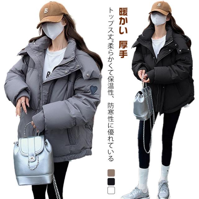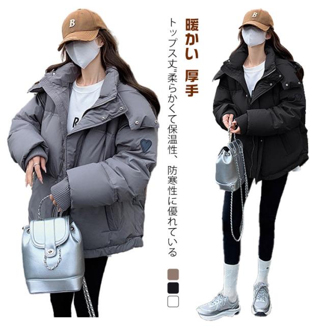 通勤 レディース 秋冬 ダウンジャケット フード付き アウター 暖かい 可愛い 厚手 防寒 中綿入り ショート丈 ジャンパー 中綿ジャケット 韓国風 ゆったり カジュアル ショート丈 通学 学生 女子