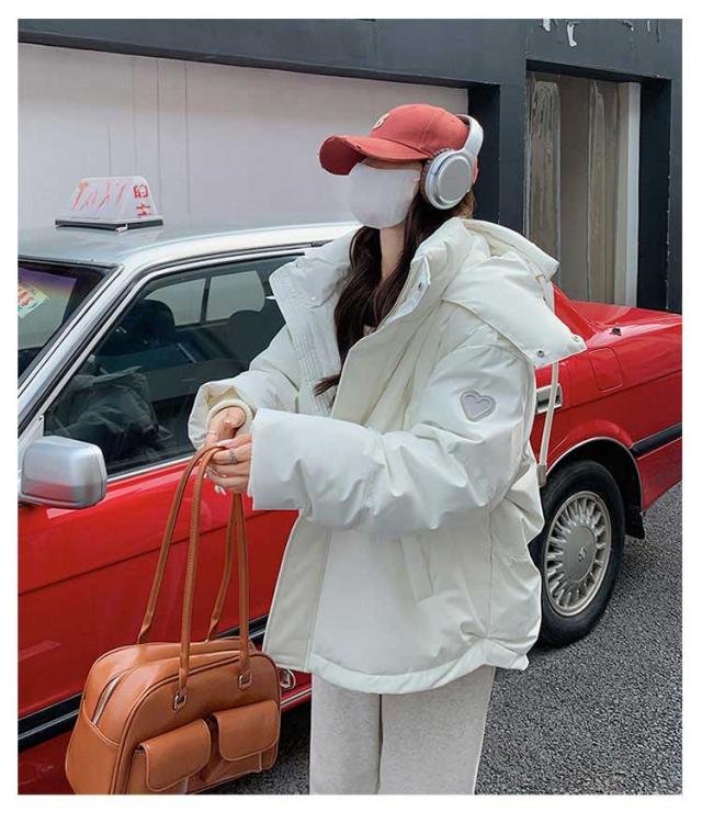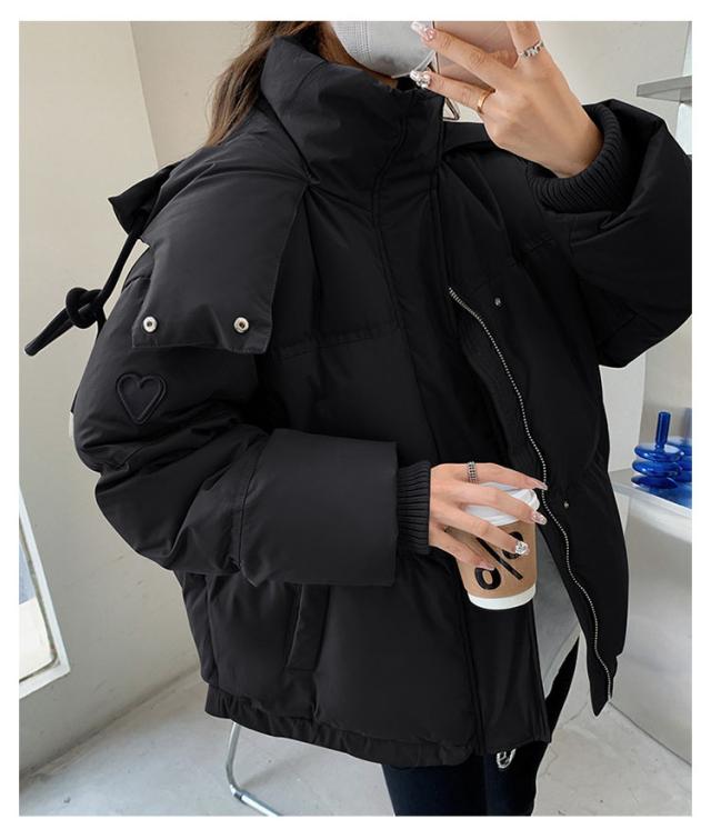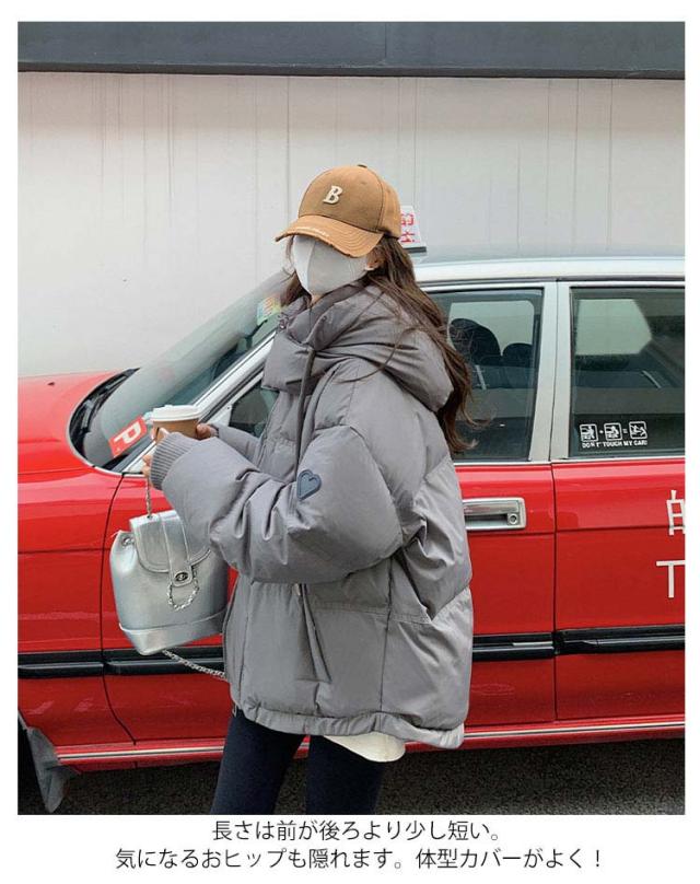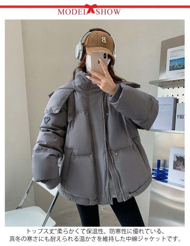 | 柔らかくて保温性、防寒性に優れている、真冬の寒さにも耐えられる温かさを維持した中綿ジャケットです。 腕側にハートの装飾が施されていて、かわいいです。 両サイドのポケットは大容量で日常のスマホや鍵などを入れることができますのですごく便利です。 大きなフードをつけているで着てすぐ暖かくなります。 保温性も良く、防風性も完璧です! 長さは前が後ろより少し短い。気になるおヒップも隠れます。体型カバーがよく! ショート丈ダウンコートは動きやすいです。デニムやパンツスタイルにはもちろん、フレアースカートなどとの相性も抜群です。 下のロープは、裾の大きさを調節することができ、風の通り防ぎ、寒い冬でも下から冷たい空気が入ってくるのを防ぐことができ、とても暖かい。 | |