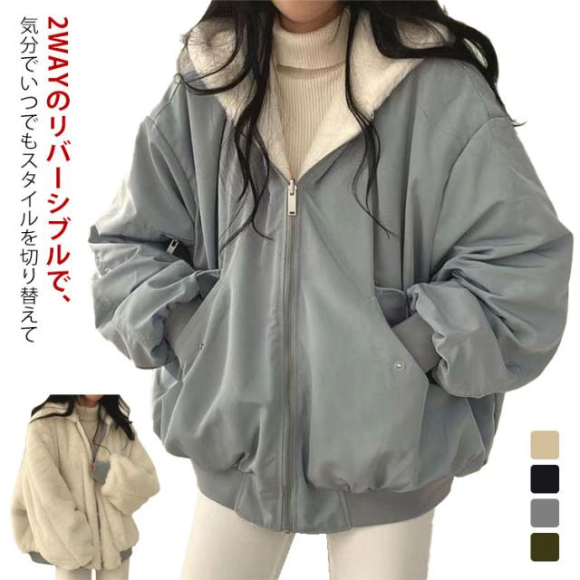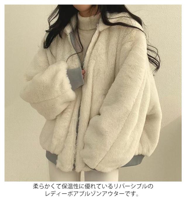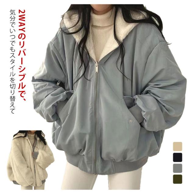アウター レディース リバーシブル アウター ボアブルゾン ボアジャケット コート 秋冬 ゆったり 暖かい カジュアル もこもこ 柔らかい 2way 通勤 通学 大きいサイズ 防寒着 防寒コート ショート丈