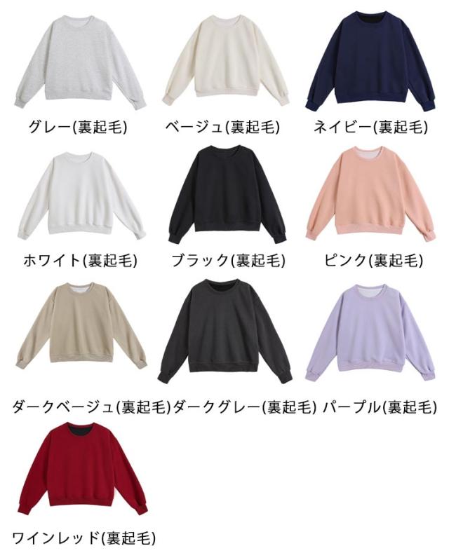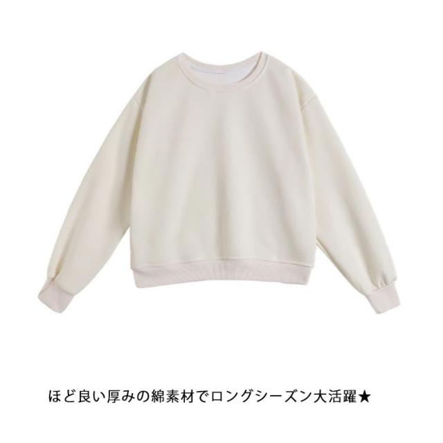 | 裏起毛と起毛無しの2タイプ 長すぎず、短すぎない丈感! スタイリングの幅が広がるトレーナーです◎ ほど良い厚みの綿素材でロングシーズン大活躍★ 普段着から通勤まで、様々なシーンで活躍できるアイテム♪ | |