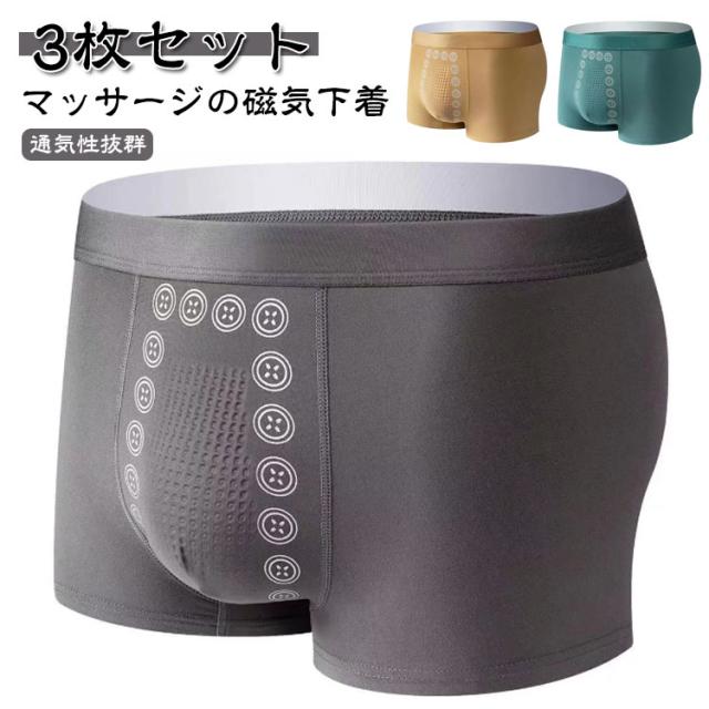 アンダーウェア マッサージの磁気下着 ボクサーパンツ メンズパンツ 3枚セット 男性下着 ショーツ 抗菌防臭 ボクサー 下着 柔らかい 誕生日 春夏秋冬 メンズ メンズ下着 機能性下着 磁気パンツ シニア 大きいサイズ 通気性