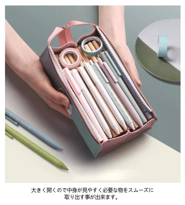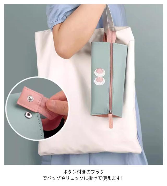 | たっぷり収納出来てとても便利な持ち運べるペンケース たっぷりの大容量、ペン、消しゴム、ハサミ、定規、修正テープなどの文房具を収納出来ます。 大きく開くので中身が見やすく必要な物をスムーズに取り出す事が出来ます。 質の高いPUレザーを採用して、防水機能もありお手入れ簡単にもうれしいポイント。 ボタン付きのフックでバッグやリュックに掛けて使えます! 文房具だけでなく、メイク道具などを入れるコスメポーチとしても◎ 可愛いデザインはプレゼントにもおすすめ♪ | |