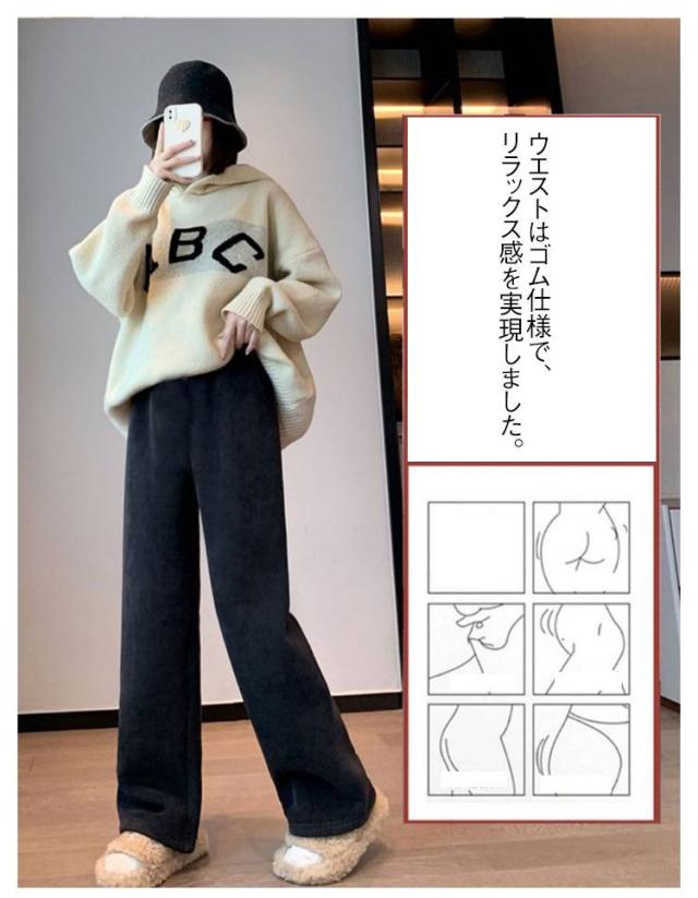 かわいい 裏起毛 ロングパンツ 裏起毛パンツ レディース コーデュロイ 冬 ボトムス ストレートパンツ パンツ 防寒 暖かい 部屋着 ルームパンツ 暖かい ズボン 厚手 柔らかな肌触り カジュアル ウエストゴム スラックス リブ