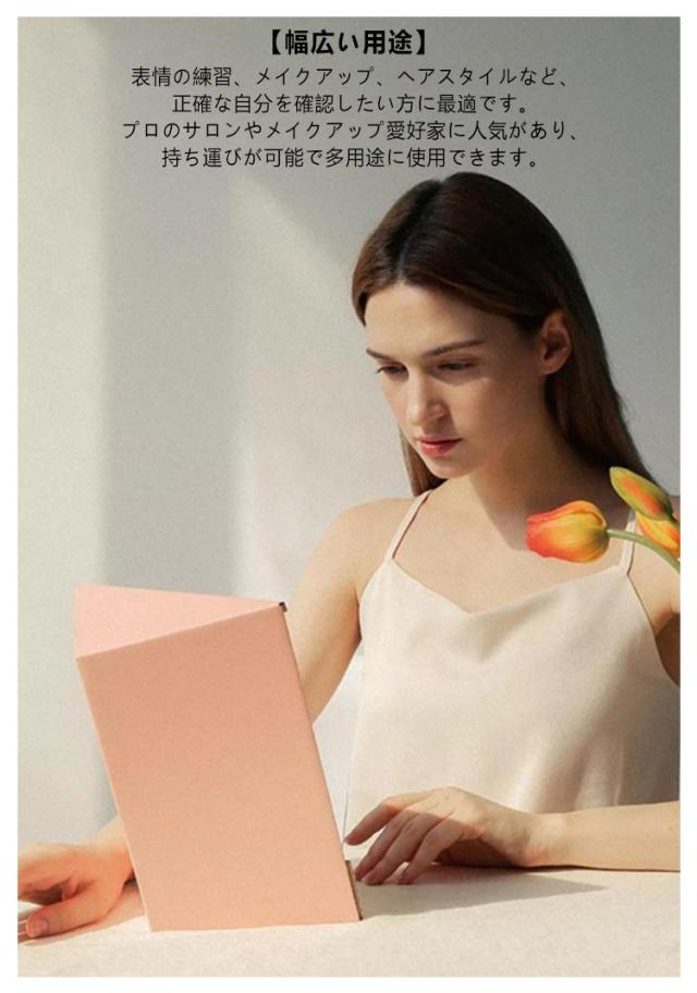 左右非反転ミラー リバーサルミラー 左右反転なし リバーサルミラー リアルミラー 三角固定非反転ミラー スタンドミラー 本当の自分 ミラー メイク用 左右非反転鏡 メイクアップミラー 顔補正 化粧鏡 送料無料 モデル