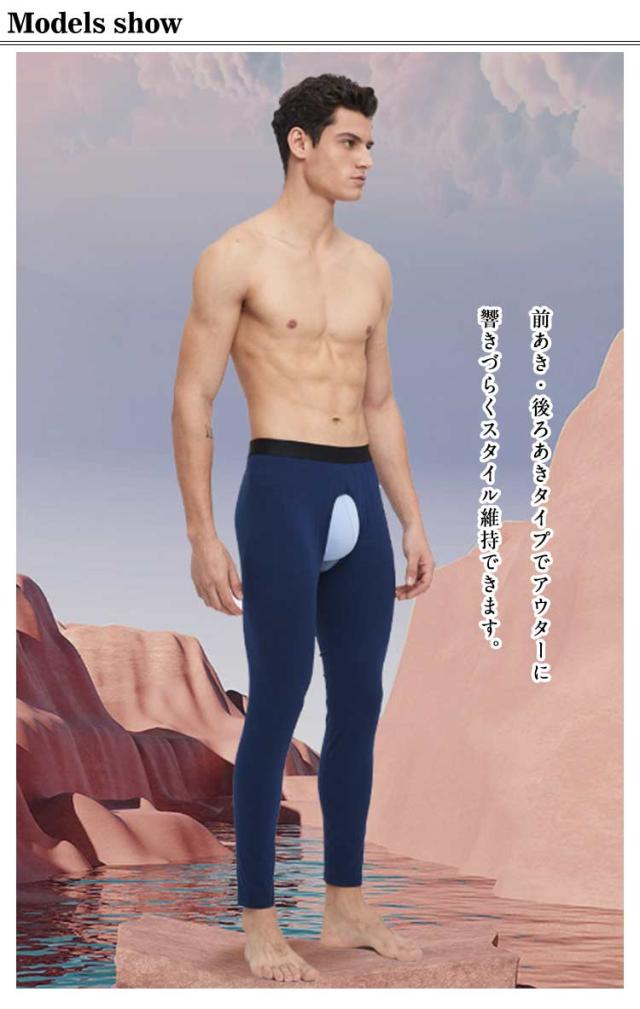 | 【2枚セット】【蒸れない】【綿 インナーパンツ】 蒸れずにしっかり温かいメンズ用レギンス。 伸縮性が高い素材なので身体にほどよくフィットします。 綿混なので、やさしく心地よい肌触りです。 前あき・後ろあきタイプでアウターに響きづらくスタイル維持できます。 | |