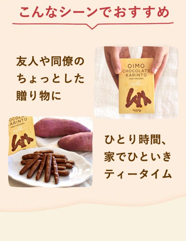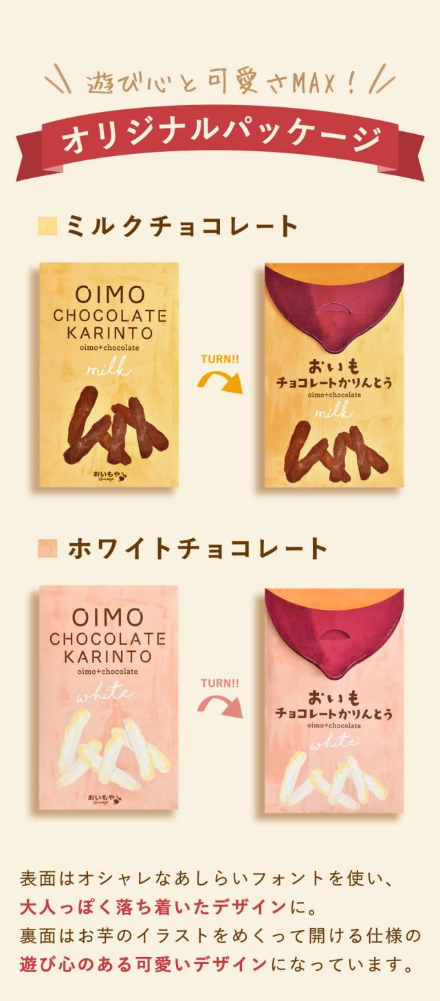 幅広い世代から人気のおいもやのロングセラー芋けんぴに、くちどけなめらかなチョコレートをコーティングした『おいもチョコレートかりんとう』が、おしゃれで可愛いパッケージに入って登場!!