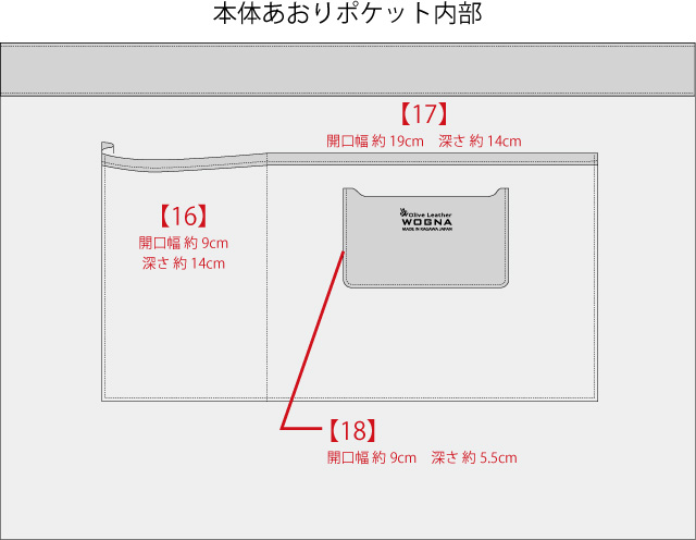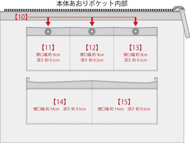 【16】ペンケースやメガネケースなど縦長の物を入れられるポケット