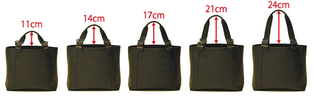 持ち手の長さは5段階調節。手提げでも肩掛けでも使えます。