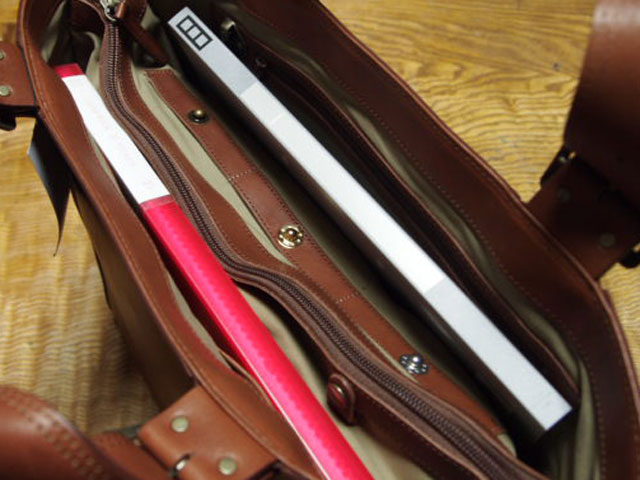 持ち手の先は専用ポケットに入れられるので邪魔にならず、反ったりしません。
