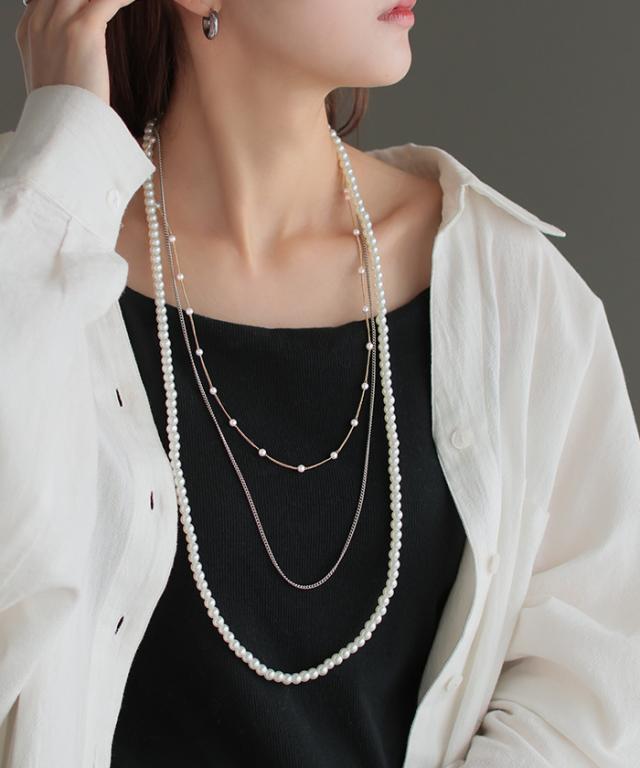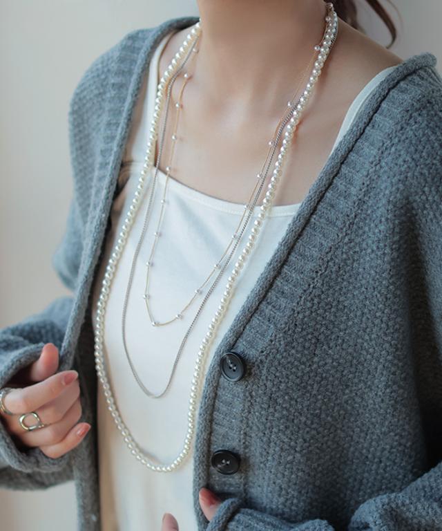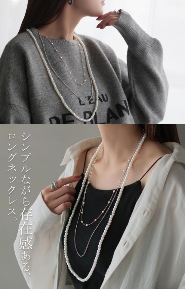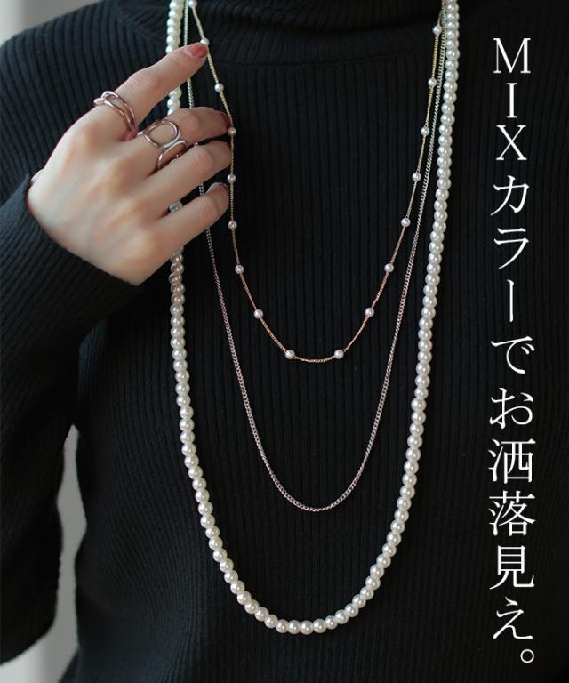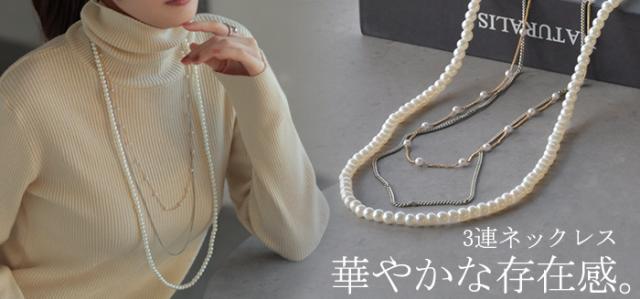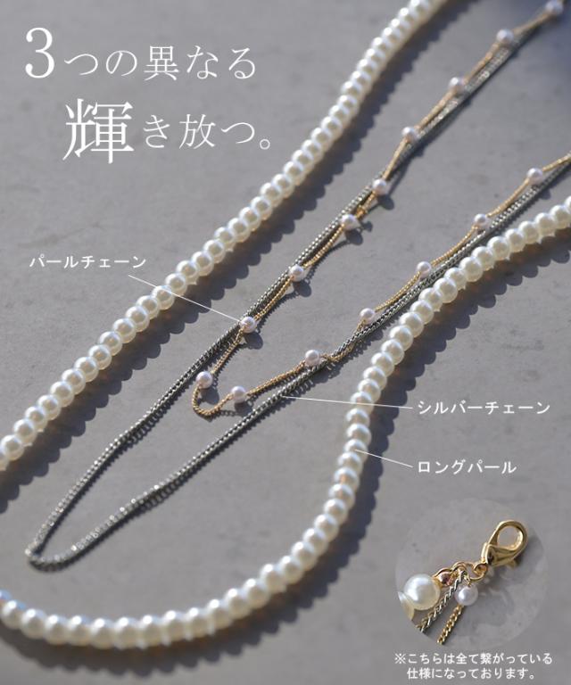 ネックレス ロング パール レディース アクセサリー アクセ パールネックレス ロングネックレス 長い 3連 きれいめ カジュアル フォーマル 真珠 ジュエリー パーティー 大人 女性 シンプル チェーン 結婚式 シルバー ゴールド おしゃれ 秋 冬 HUG.U 秋新作