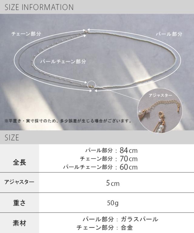 | 全長(パール部分) | 全長(チェーン部分) | 全長(パールチェーン部分) | アジャスター |