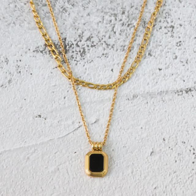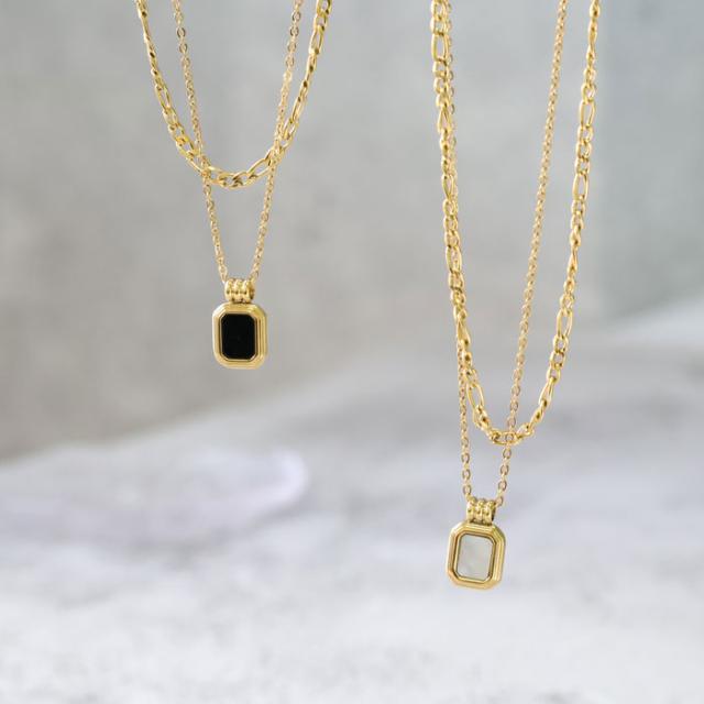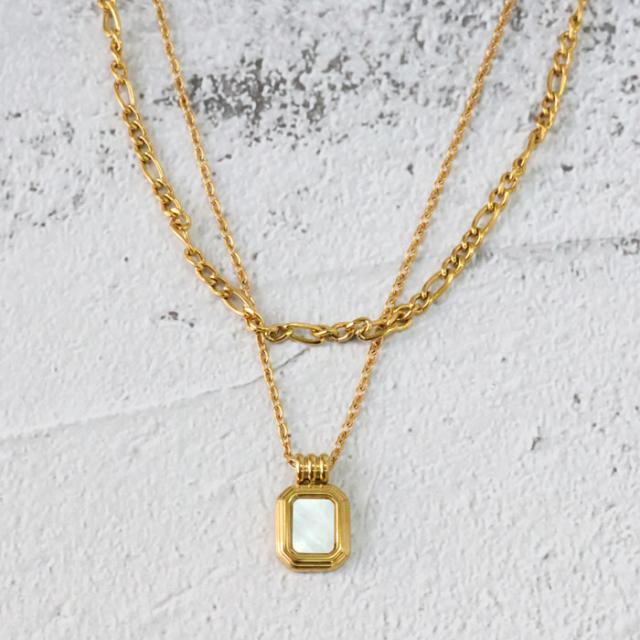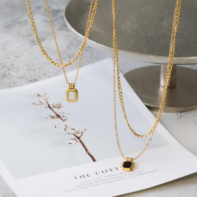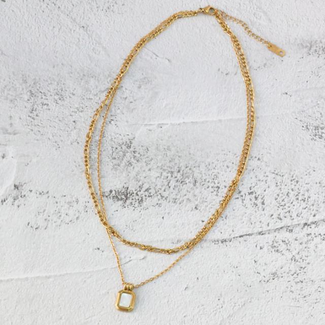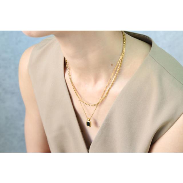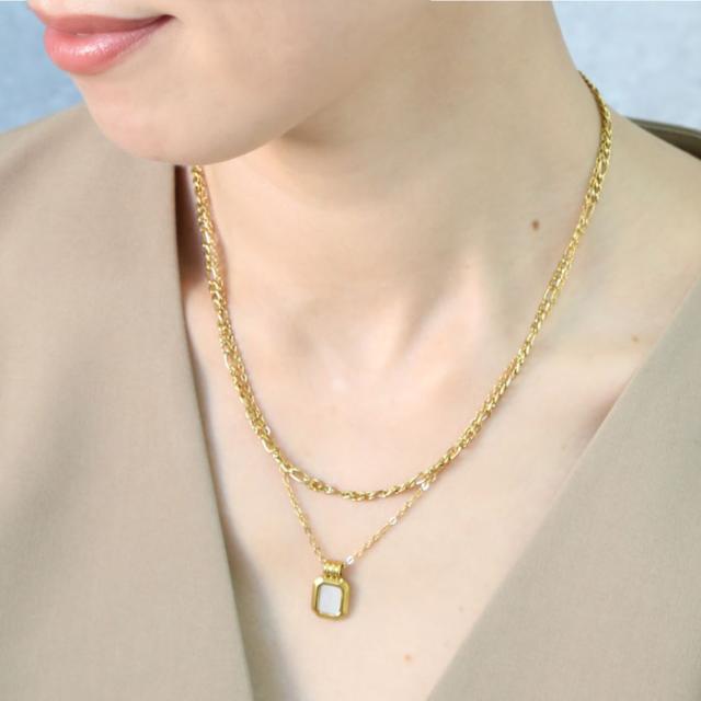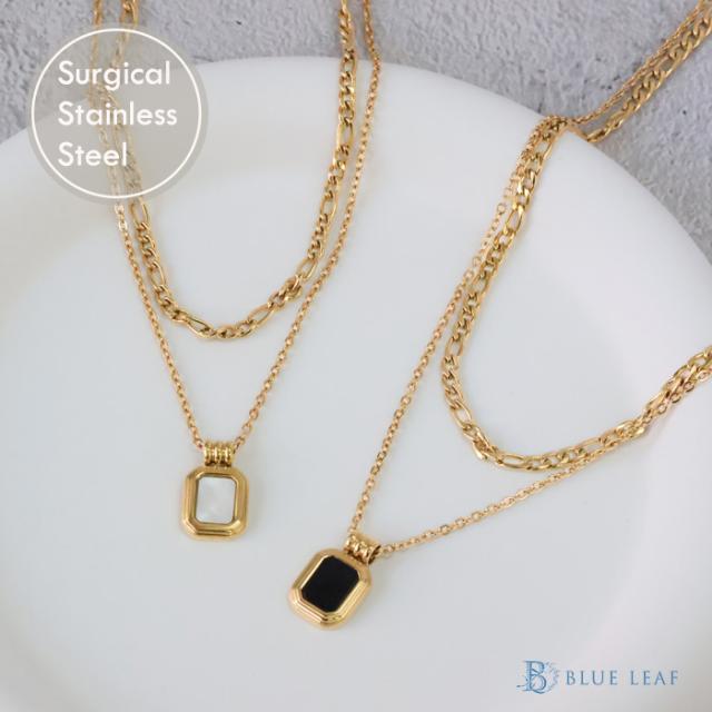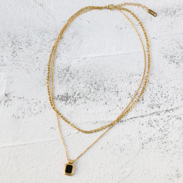 ステンレス ネックレス 二連 四角 あずき 金属アレルギー対応 k18コーティング アジャスター付き シンプル ドロップ ゴールド ホワイト ブラック 上品 エレガント 清楚 カジュアル 女性 アクセサリー 医療用ステンレス ニッケルフリー