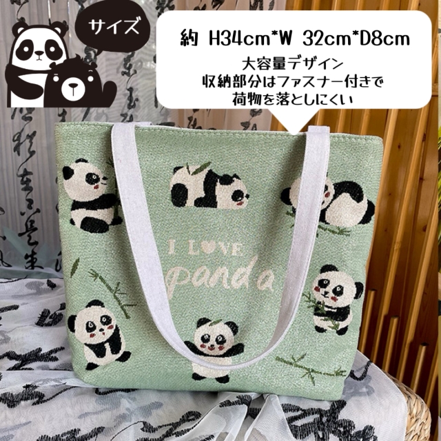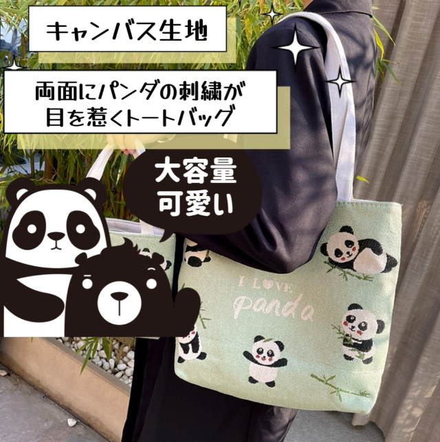 - デザイン: パンダの刺繍が施されたトートバッグ