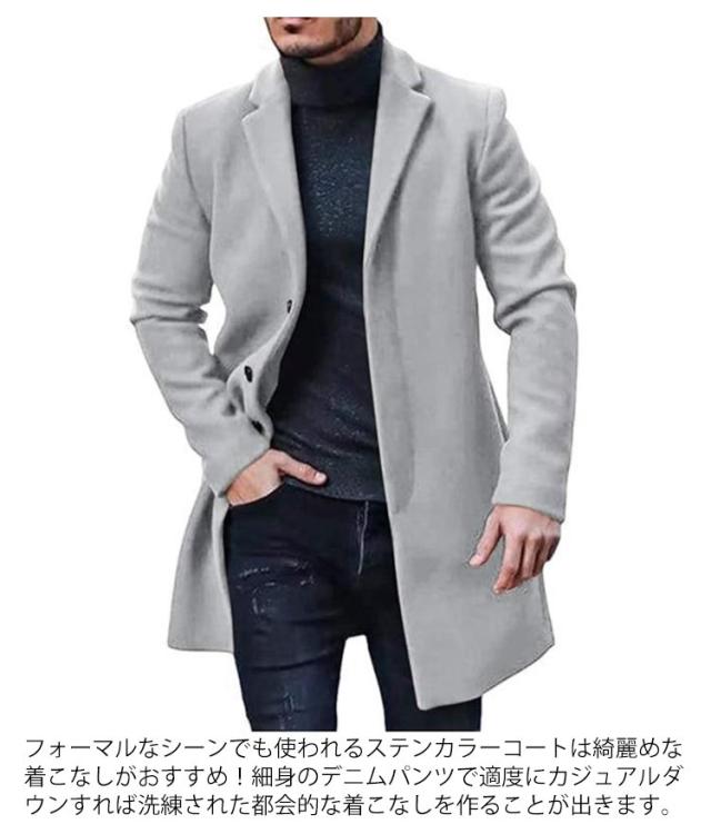 | 高品質の材料を採用し、厚手のしっかりした生地感が特徴的なメルトン素材のチェスターコートです。 冬の代表的なアウターに用いられる生地です。フェル卜のようなふんわりとした感触があり、保温性が高く暖かい生地になっています。 様々なスタイルでアウターの着こなしを楽しめるよう、シンプルなデザインも魅力のひとつ。キレイ目で好印象な着こなしから、トレンド感のある着こなしまであらゆるスタイルに対応します。 フォーマルなシーンでも使われるステンカラーコートは綺麗めな着こなしがおすすめ!細身のデニムパンツで適度にカジュアルダウンすれば洗練された都会的な着こなしを作ることが出きます。 | |