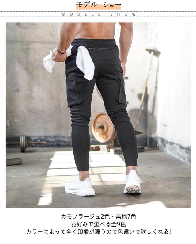 カモフラ メンズ トレーニングパンツ ジョガーパンツ フィットネス 無地 スキニー ストレッチ スリム スウェットパンツ メンズ ジム スポーツウェア 多ポケット 筋トレ ロング パンツ 細身 大きいサイズ 綿 コットン
