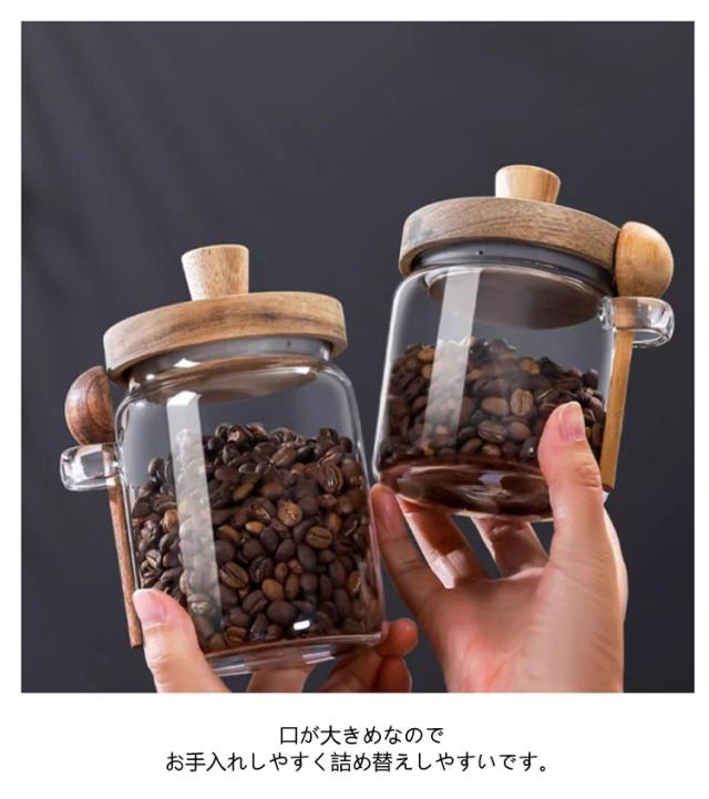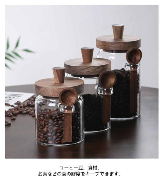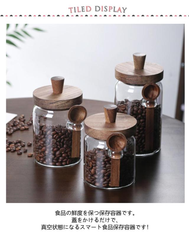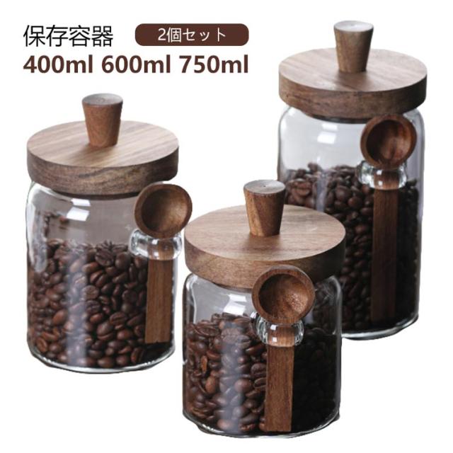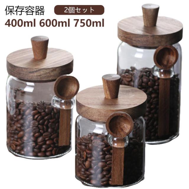 スプーン付き 乾物 コーヒー豆 漬物 400ml 容器 豆収納 木製蓋 600ml 2個セット!保存容器 フードストッカー 2個セット!保存容器 耐熱ガラス ペットフード 梅雨対策 750ml 密封 ストッカー フードキーパー 耐熱 耐冷 調味料容器 茶筒