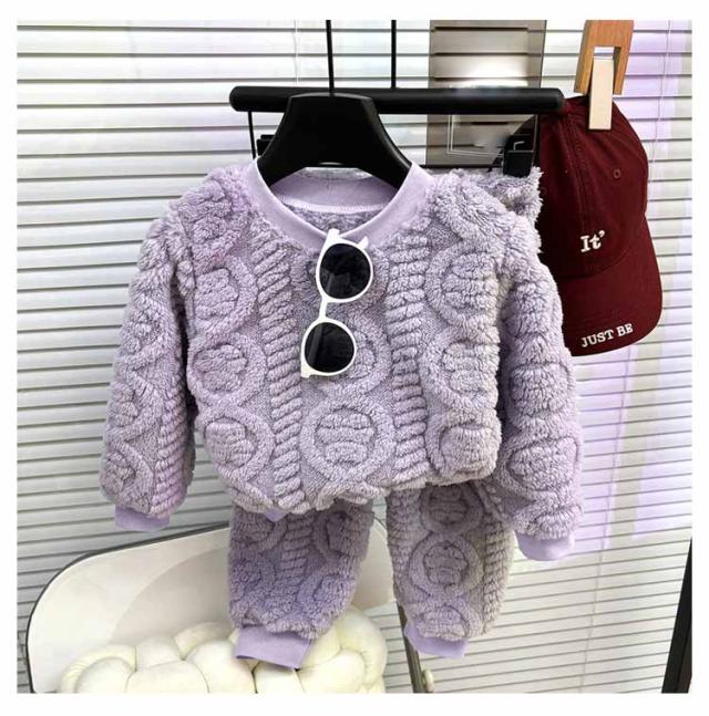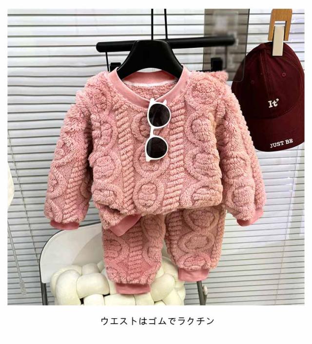 | 80-140cm もこもこパジャマ 便利な2点セット。お揃いカラーがかわいいトップス&パンツ ウエストはゴムでラクチン♪ 袖囗・足口もゴム入りで、きゅっとしっかり暖かい。 優しい肌触り。もこもこふわふわな厚手生地が心地いい | |
