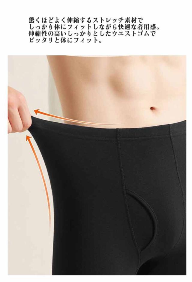 前開き 下着 ストレッチ ズボン下 メンズ 秋冬 ウエストゴム フィット タイツ 保湿性 送料無料 インナー アンダーウェア 10分丈 長ズボン シンプル あたたかい ルームウェア 送料無料 あったかインナー 男性 保温 紳士