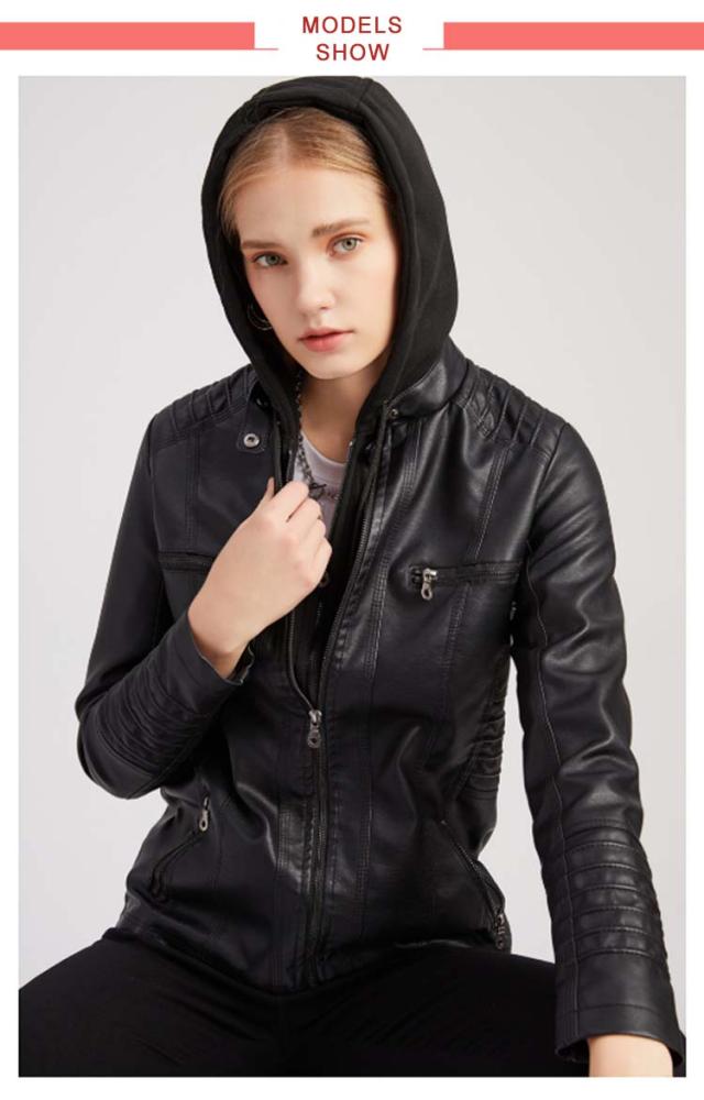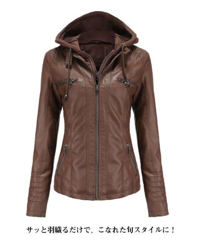 レディース カジュアル フード付き ジャケット ライダースジャケット フード付き合皮ジャケット フェイクレザージャケット フェイクレザー フード付き合皮ジャケット パーカー PU 合皮 大きいサイズ ショート丈 スリム カッコイイ アウター 春秋 大人 女性